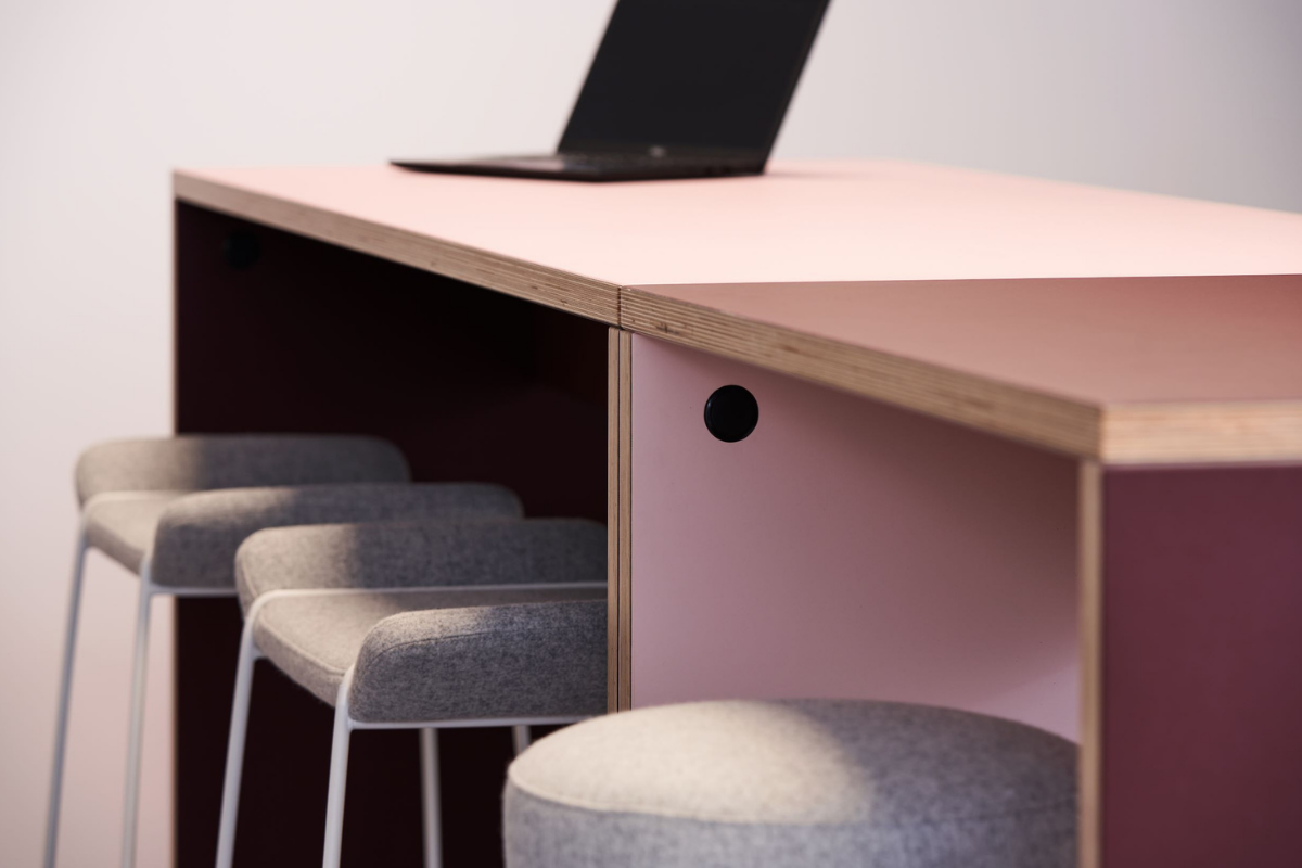 Mødelokalerne har vi indrettet med borde i forskellige højder, der giver mulighed for varierende siddestillinger og forskellige typer møder. Det runde Fay bord kan nemt flyttes, stables og opstilles i forskellige former. Den runde form indbyder til samtale, hvor alle kan se og snakke med hinanden.