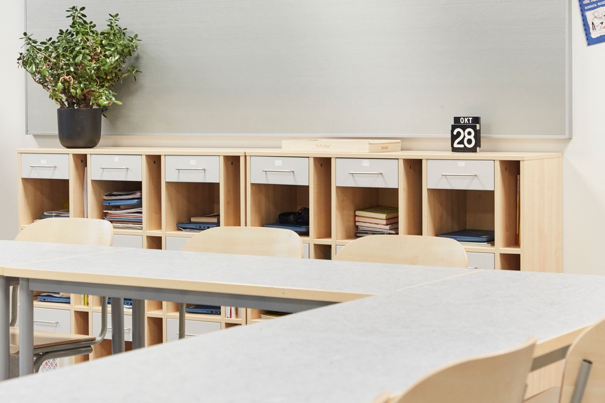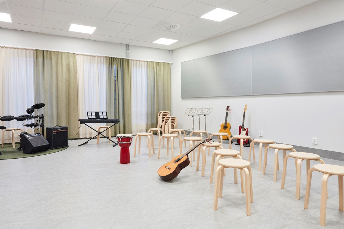 Da Lekolar skulle indrette skolen, var skolens ønske at skabe et læringsmiljø, der fremmer kreativitet og udforskning og som opfylder skolens mål om at være en skole, som er bæredygtig, lydisoleret, uden skadelig kemi og nem at vedligeholde.