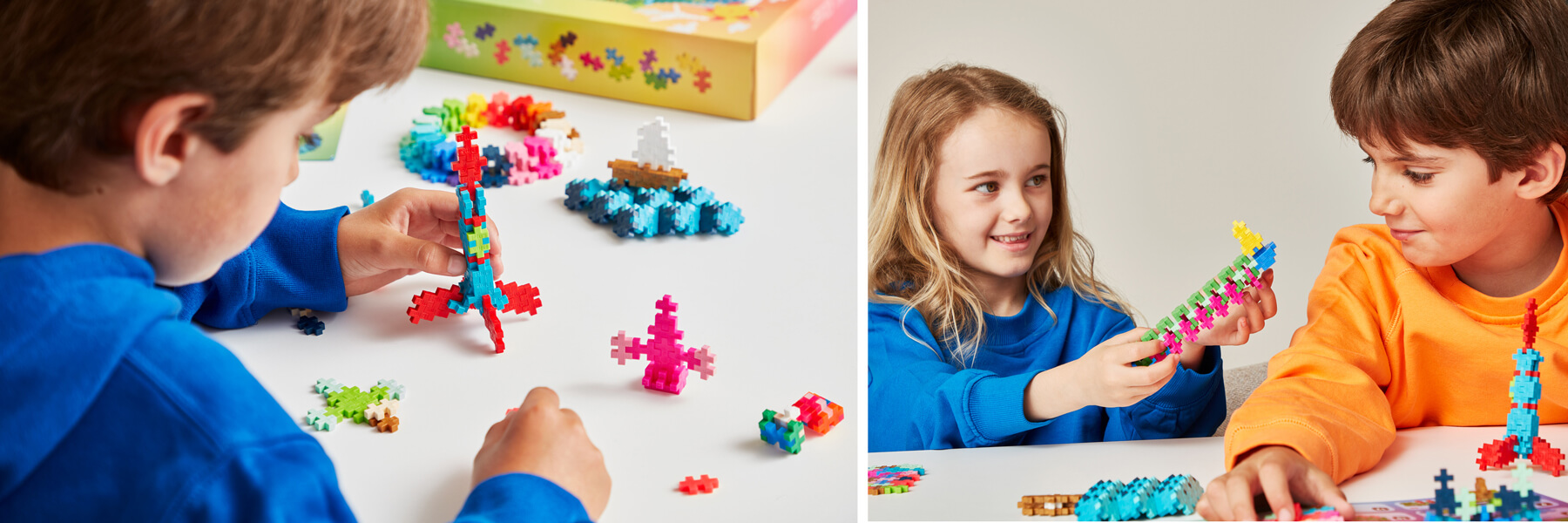 Med PLUS-PLUS byggeleg kan børn i daginstitutioner og skoler træne farver, former, tal, motorik, konstruktion, matematik og meget mere. PLUS-PLUS er 100 % genanvendeligt og fremstillet af levnedsmiddelgodkendt plast, som er helt fri for PVC og ftalater. Et pædagogisk læringsværktøj der fås i forskellige størrelser og derfor giver konstruktionslegen uendelige muligheder. Brikkerne er fremstillet i Danmark.