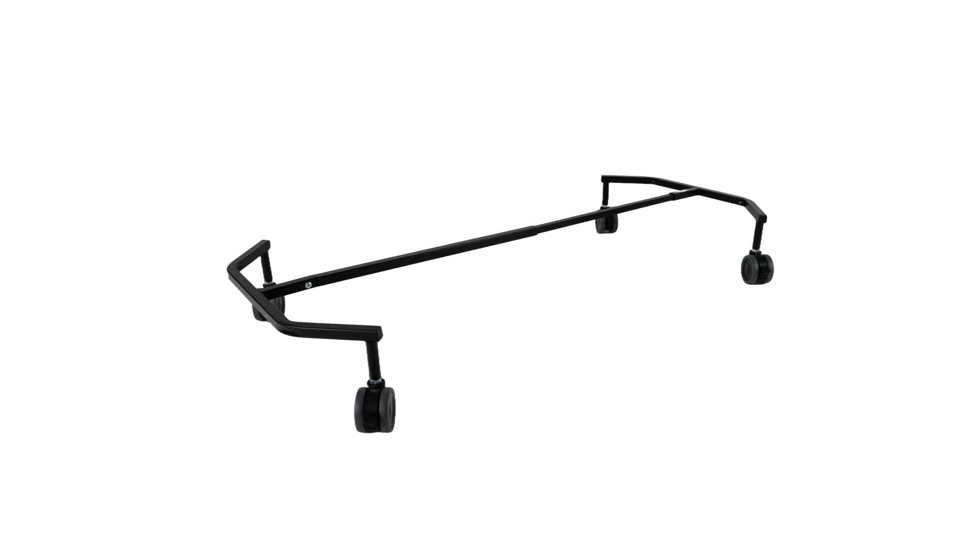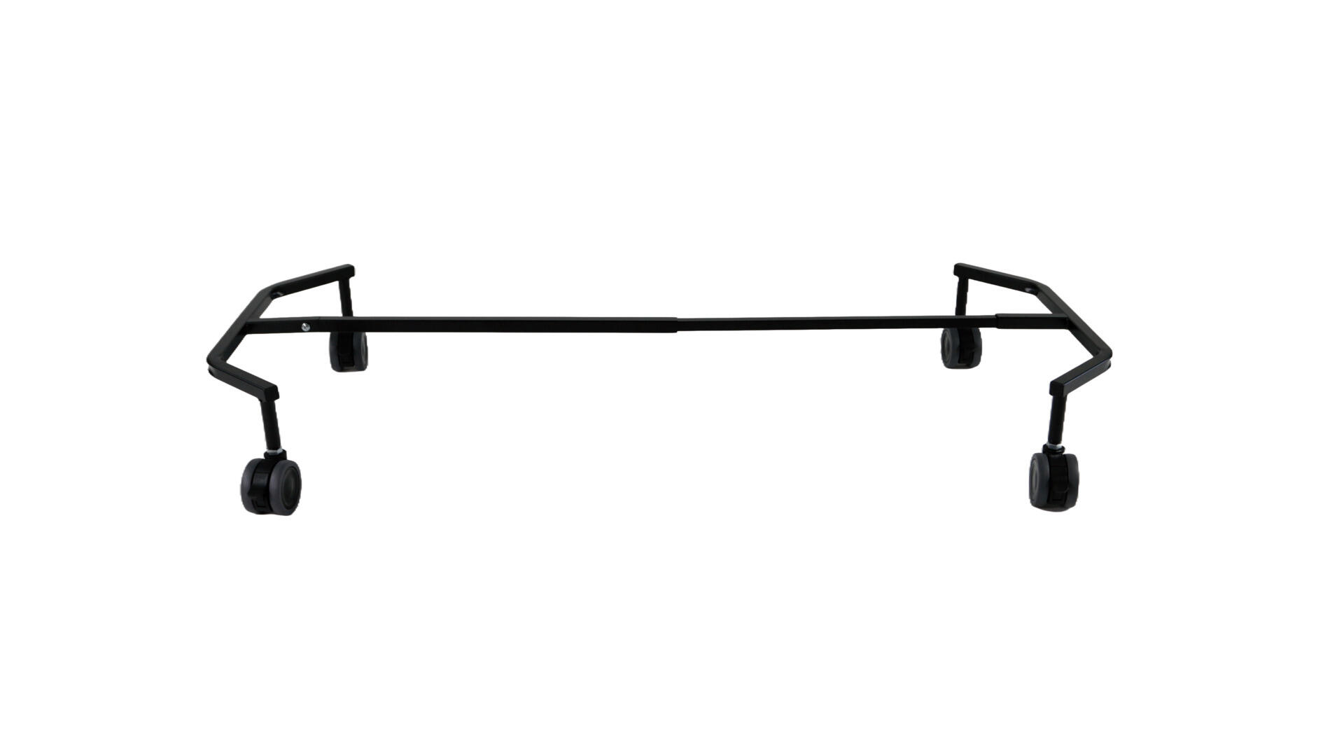 Stativ i sortlakeret metal med 4 hjul, hvoraf 2 er låsbare. Gør det nemt at flytte den stabelbare seng med varenr. 156075. Man kan stable op til 20 senge pr. stativ. Mål: L131xB60xH18 cm.