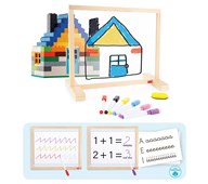 Bruge til at øve på skrivebevægelser, matematik eller bogstaver. 6 whiteboardpenne medfølger til at tegne på vinduet. Skabelonerne medfølger ikk. Kompatibel med 118702 sensorisk skriveplade.