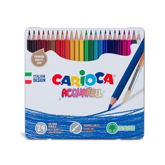 24 stk./pk. Farveblyanter som både passer til tør farvelægning og akvarel. Ekstra blød med holdbar farvestift af god kvalitet. Det giver en akvareleffekt at blande farverne og male over med vand. Sekskantet pennekrop med lakeret top.