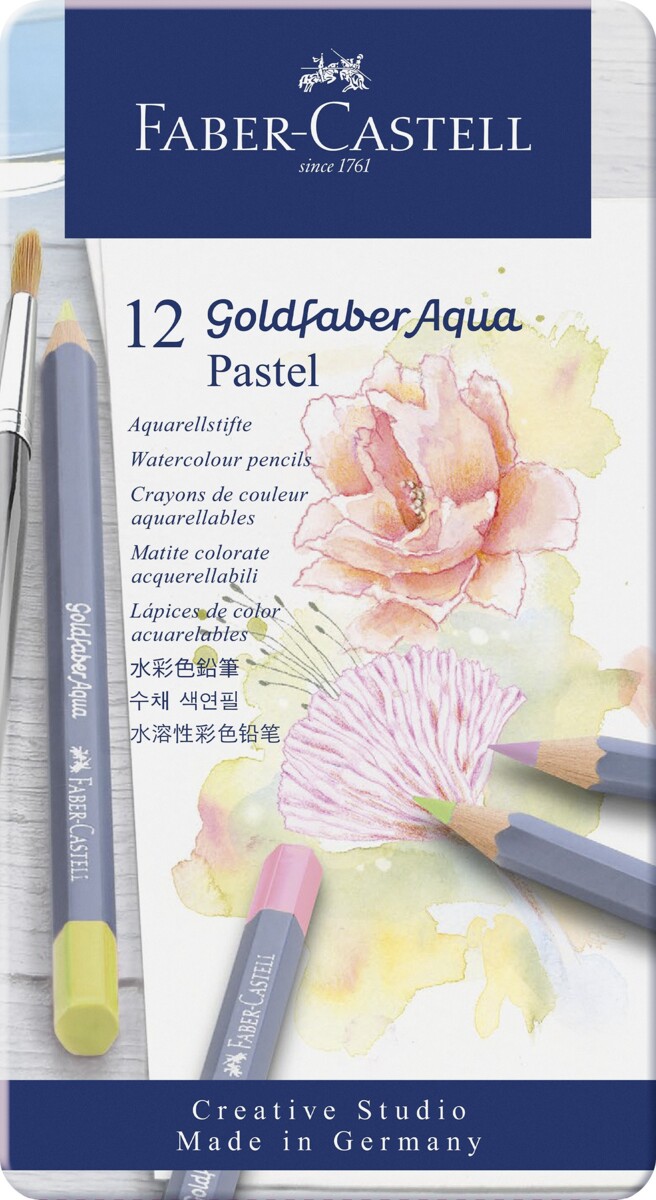 12 stk./pk. Akvarelblyanter i 12 forskellige farver. Med høj pigmentering og brudsikker stift med høj lysægthed. Fuldstændig vandopløselige. Ø 7 mm, stift: Ø 3,3 mm. FSC-mærket. Leveres i metalæske.