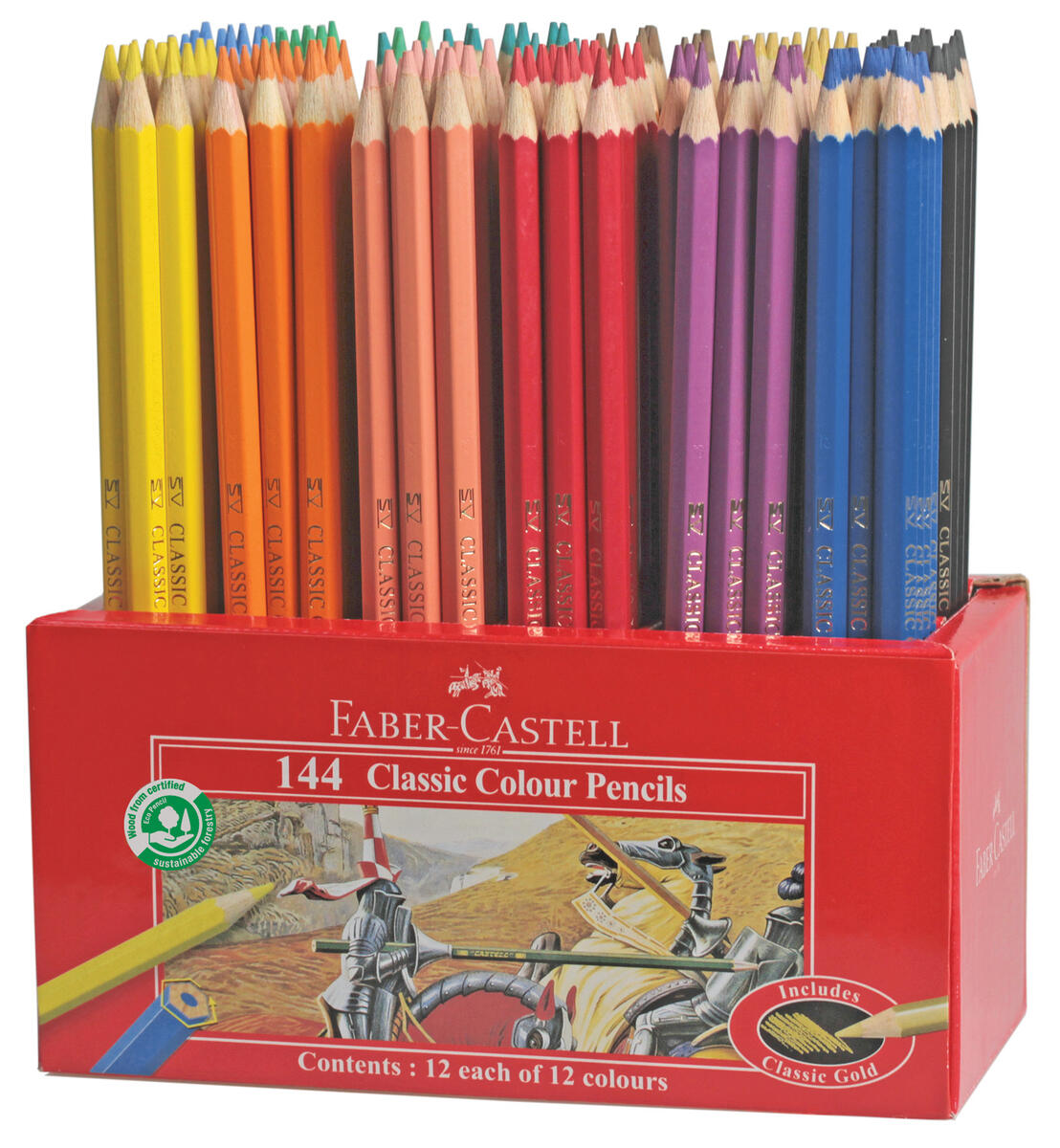 144 stk./pk. Sekskantede farveblyanter i høj kvalitet og med god dækkeevne. 12 forskellige farver. Farver der medfølger: fersken, gul, orange, rød, rosa, lilla, blå, lyseblå, grøn, lysegrøn, brun og sort. Leveres i papkasse. PVC-fri.
