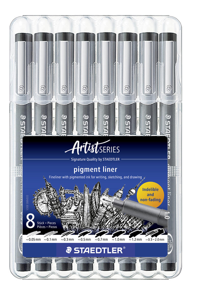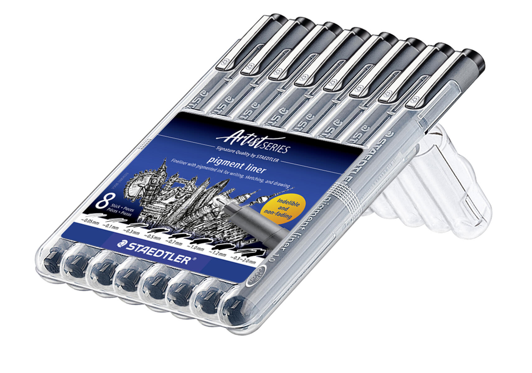 8 stk./pk. Skitseblyanter i 8 forskellige linjebredder med en lang metalspids, som er velegnet til arbejde med lineal og skabeloner. Lysbestandig, trænger ikke igennem.