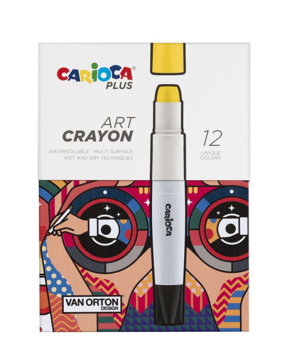 12 stk./pk. Vandopløselige farvekridt med god dækkeevne. Egnet til både våde og tørre teknikker. Ergonomisk greb. Indeholder gul, orange, rød, lyserød, lilla, lyseblå, blå, lysegrøn, grøn, brun, sort og hvid. Fra 3 år.