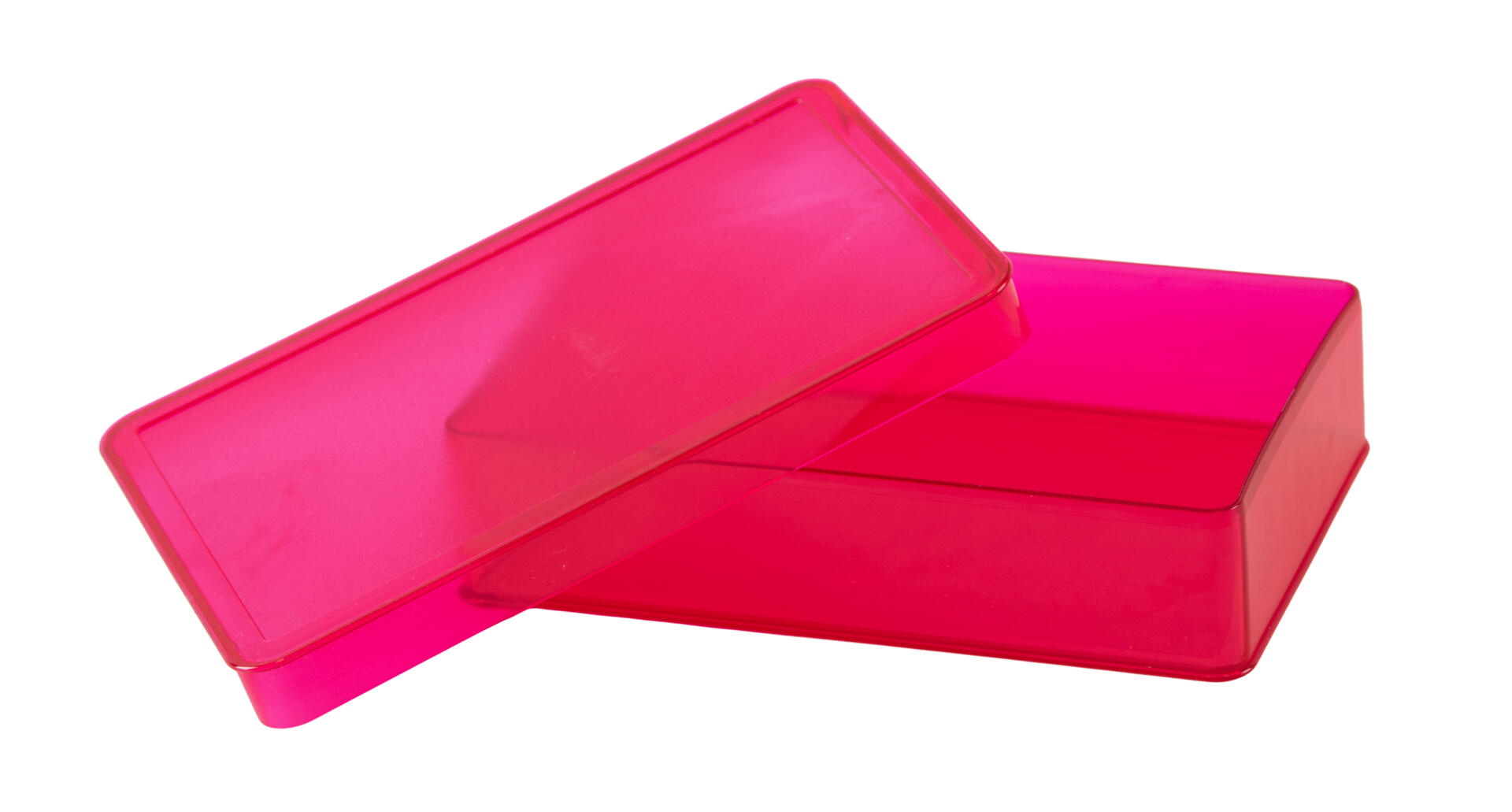 Gennemsigtig kasse i solid plast. Nem at rengøre i hånden eller opvaskemaskinen. Kan stables både i og på hinanden. Godkendt til mad. Mål: B14xD20xH7,5 cm. Rummer 1,5 l.