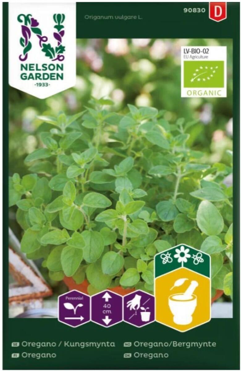 Økologisk oregano. Aromatisk krydderurt med blå blomster. Høst løbende og brug frisk, eller klip hele grene til tørring. Perfekt til retter med tomat og feta. Rækker til ca. 60-70 planter.