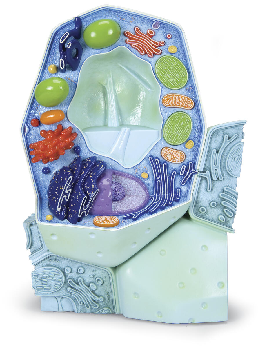 Denne todelte plantecellemodel viser strukturerne af en typisk plantecelle set med et elektronmikroskop. Cytoplasmaet og alle vigtige organeller i plantecellen er i hævet relief og vist i farver. Funktioner inkluderet i modellen: cellevæg, cellemembran, kerne, glat endoplasmatisk retikulum, ru endoplasmatisk retikulum, ribosomer, kloroplaster, mitokondrier og dictyosomer/Golgi-apparater. Mål: 20x11,5x33 cm. Vægt: 1,461 kg.