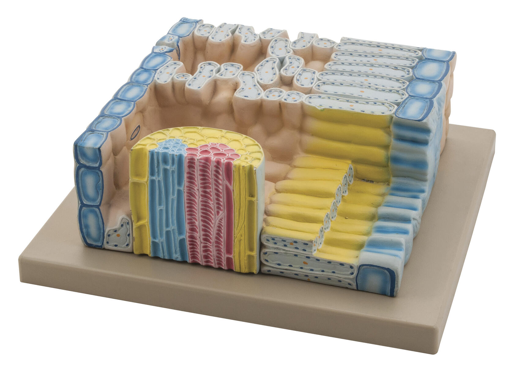 Model der viser forskellige dele af en tokimbladet plantestilk. Forstørret 200x.