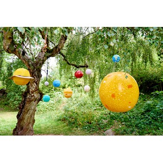 Sættet indeholder Sol Ø91,5 cm, Jupiter Ø56 cm, Saturn Ø45,5 cm, Neptun Ø35,5 cm, Uranus Ø35,5 cm, Venus Ø30,5 cm, Jorden Ø30,5 cm, Mars Ø25,5 cm, Merkur Ø35,5 cm, Pluto Ø20 cm, og Måne Ø20 cm. Pumpe og aktivitetsguide til lærere medfølger. Lavet af kraftig, vaskbar plast. Kroge til ophæng medfølger. Fra 3 år.