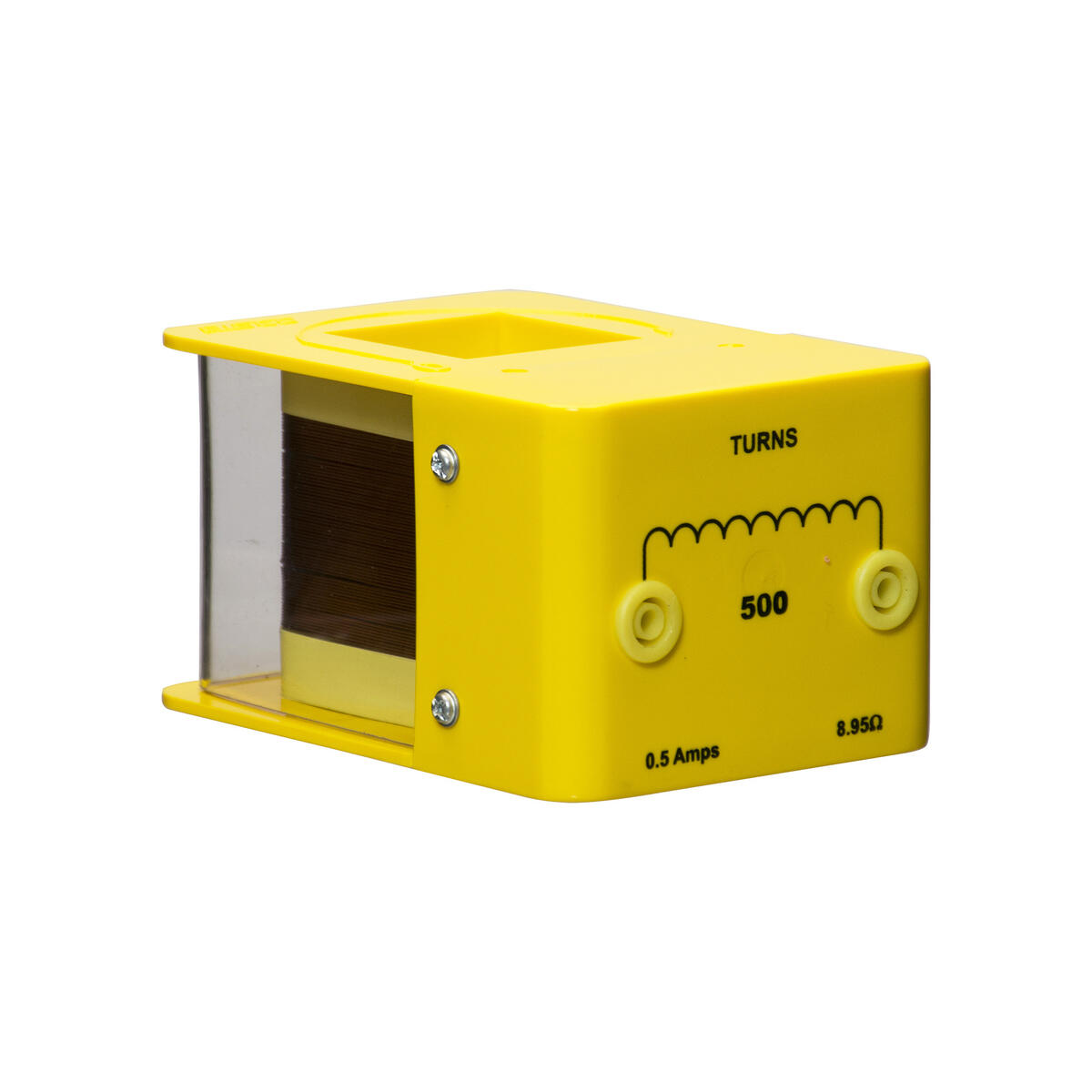 Til eksperimenter i fysik. Spolen er viklet omkring rektangulære, isolerende spoler og forbundet til en panelmontering. Jordstiften forbindes til frontpanelet og 4 mm udtag. Alle tilslutninger er fuldstændig omgivet af panelhuset. Der medfølger et separat netstik med støbt stik. Totalhøjde 70 mm. 1 A og 2,5 W.