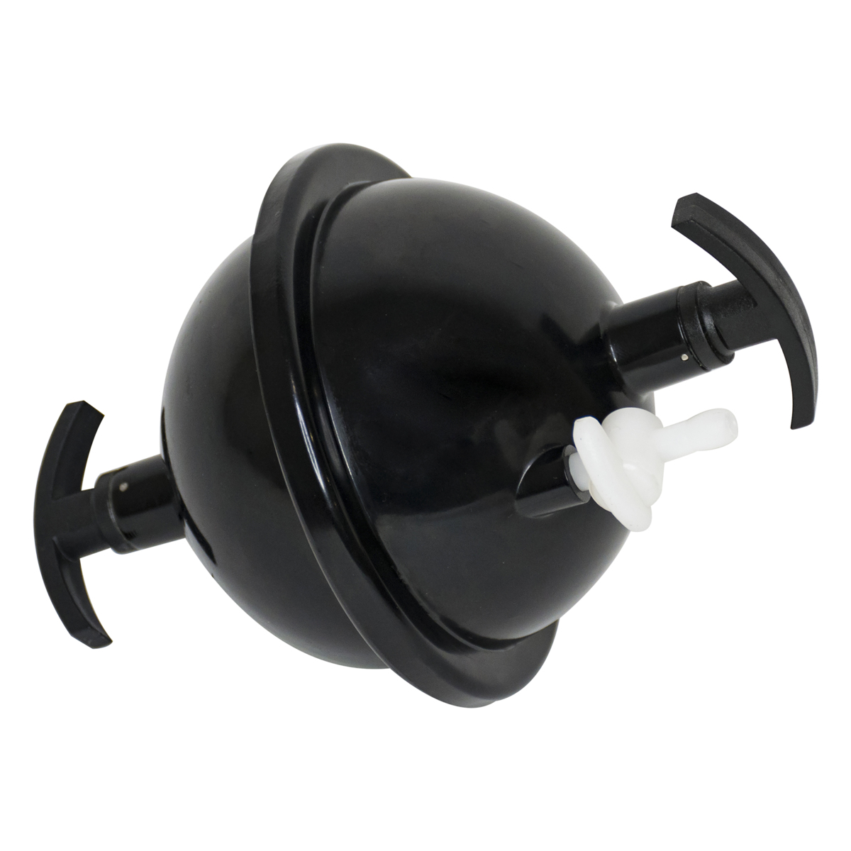 To halvkugler med håndtag og ventil til vakuum- eller vandstrålepumpe. Når luften evakueres, kan eleverne forsøge at trække dem fra hinanden (kræver ca. 1700 N). Kan også anvendes til demonstration af luftens vægt. Diameter ca. 11 cm.
