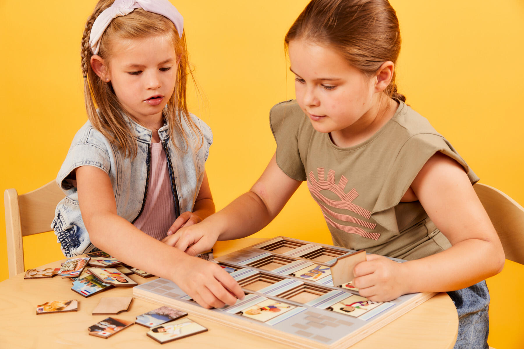 Et sjovt spil, hvor man vælger en midterdel, vender alle de andre om og blander dem. Skift til at vende brikkerne for at se, hvem der får sin lagkage færdig først. I denne version udforskes verdens kontinenter. Fremstillet af FSC Mix. Mål: 16 cm. Fra 3 år.