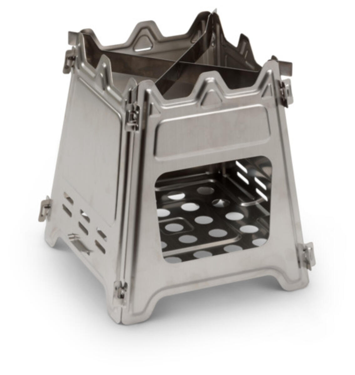 Sammenklappeligt lille bålkomfur, der kan fyres med pinde eller bruges sammen med en stormkøkkenbrænder. Perfekt til at koge kaffe, te eller varme mad i en gryde. Når komfuret er klappet sammen, kan det opbevares i en benlomme. Mål: 16x16x18 cm. Vægt: ca. 500 g.