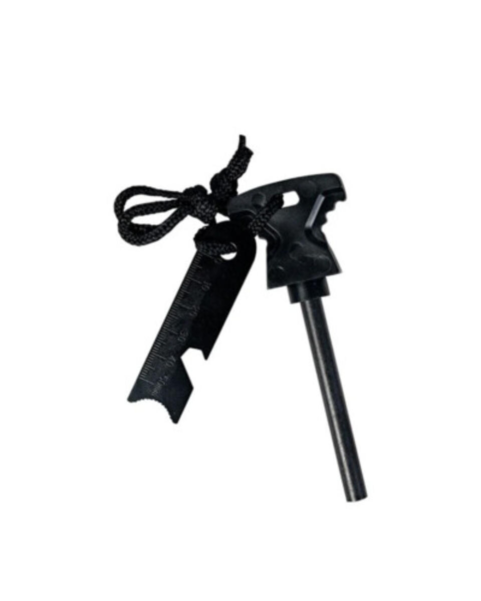 Kraftigt tændstål med tændingsgaranti også i våde miljøer. Holder til ca. 5000 tændninger. Inklusive snor og skrabeblik. Spejdermodel 75 mm. Hold skrabeblikket i en ca. 45° vinkel mod tændstålet, og skub stålet væk fra dig, samtidig med at du trykker hårdt.