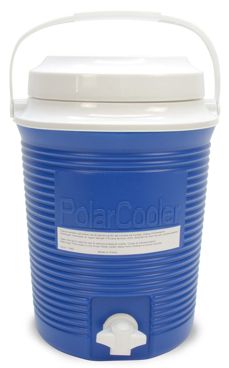 Praktisk opbevaring af drikkelse til udeaktiviteten. Kan også bruges til varme drikke. Nem at rengøre. Rummer 7,5 liter. Mål: Højde 33 cm. Ø24 cm. Af PP, PU og PE.