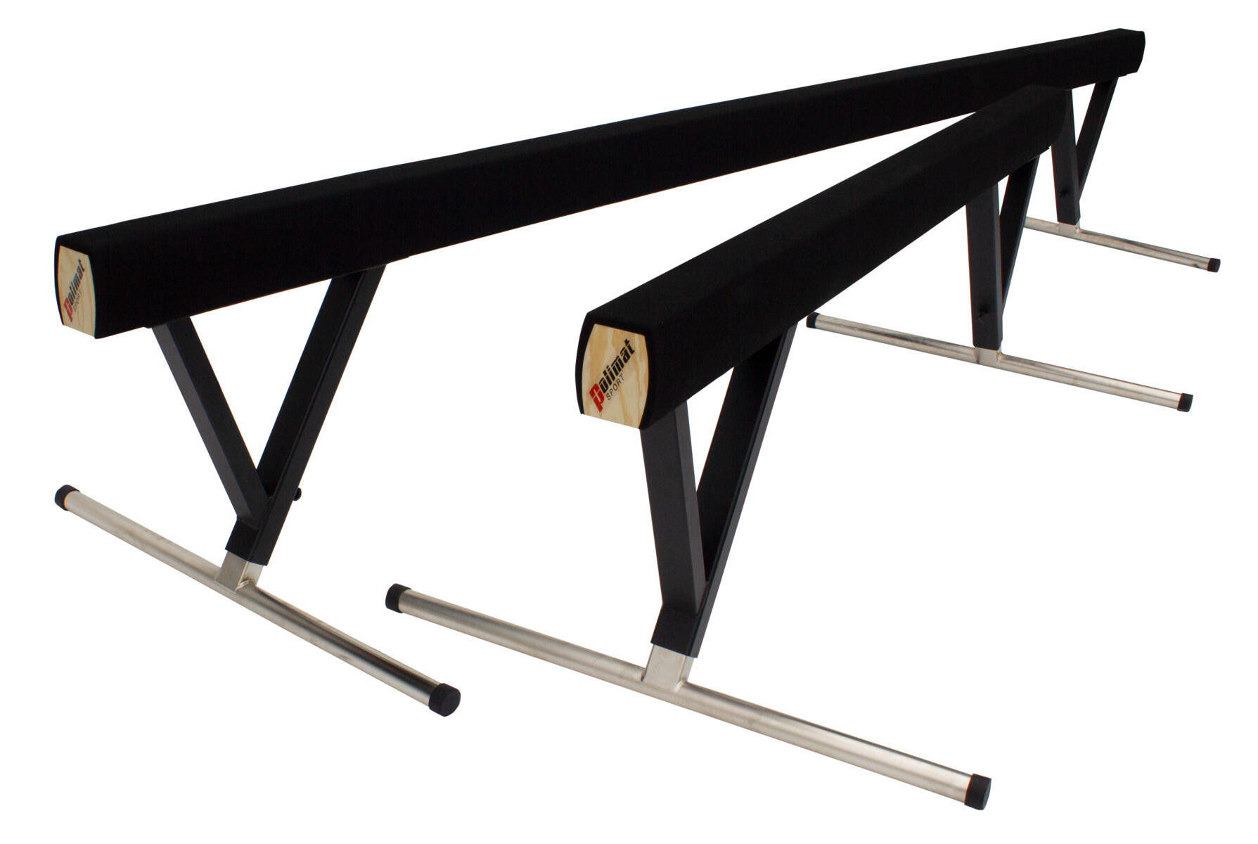 Balancebom med justerbar højde mellem 80 og 120 cm. Længde: 500 cm. Fremstillet af limtræ og beklædt med skridsikkert materiale. Opfylder EN 12432 og kravene til konkurrence.
