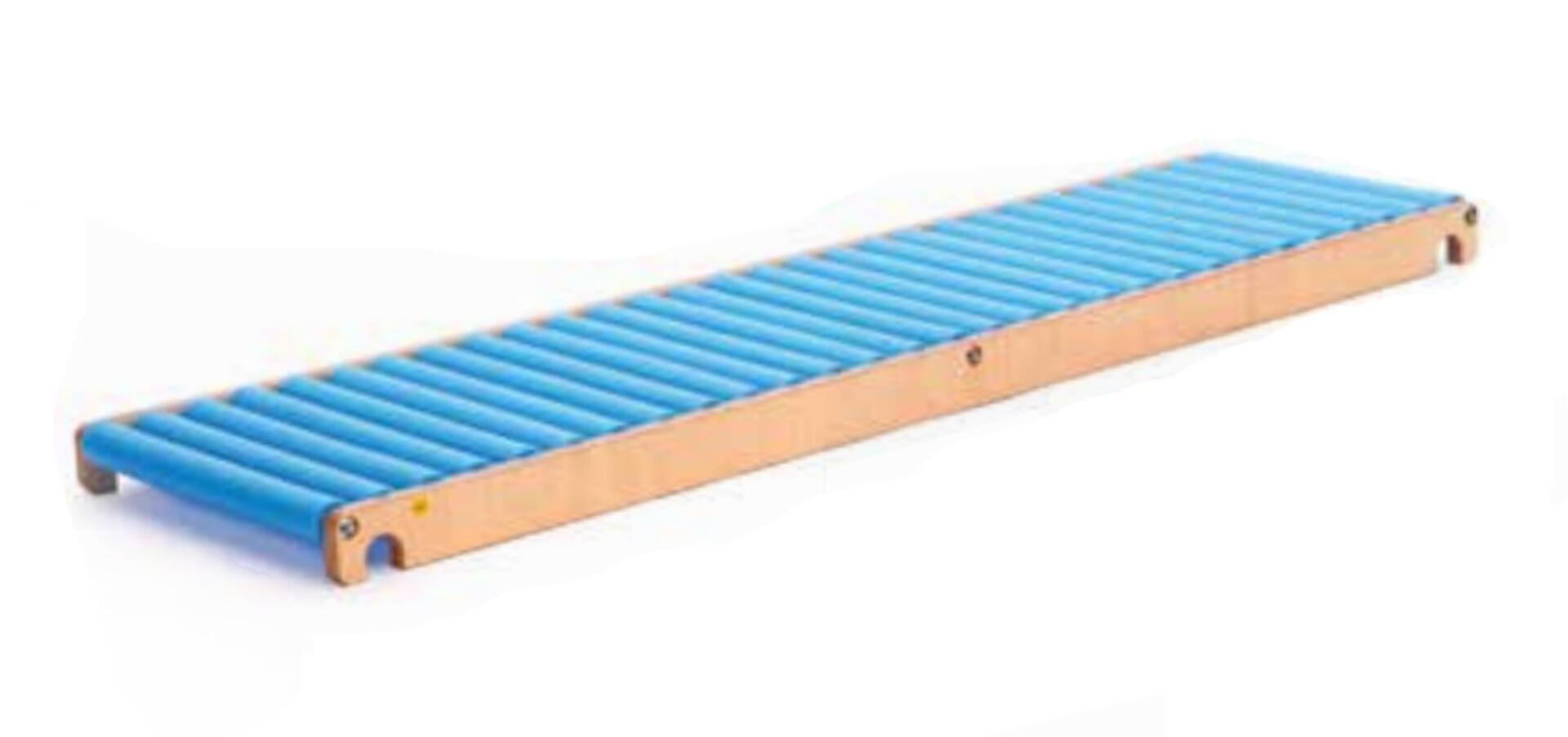 Rullebane til montering på ribber. Kompatibel med ribber med runde trin med diameter 35 mm og en afstand på mindst 10,5 cm. Mål: 205x56,5x10,5 cm. Af FSC-mærket birkekrydsfinér og PE. PVC-fri. Fra 3 år.