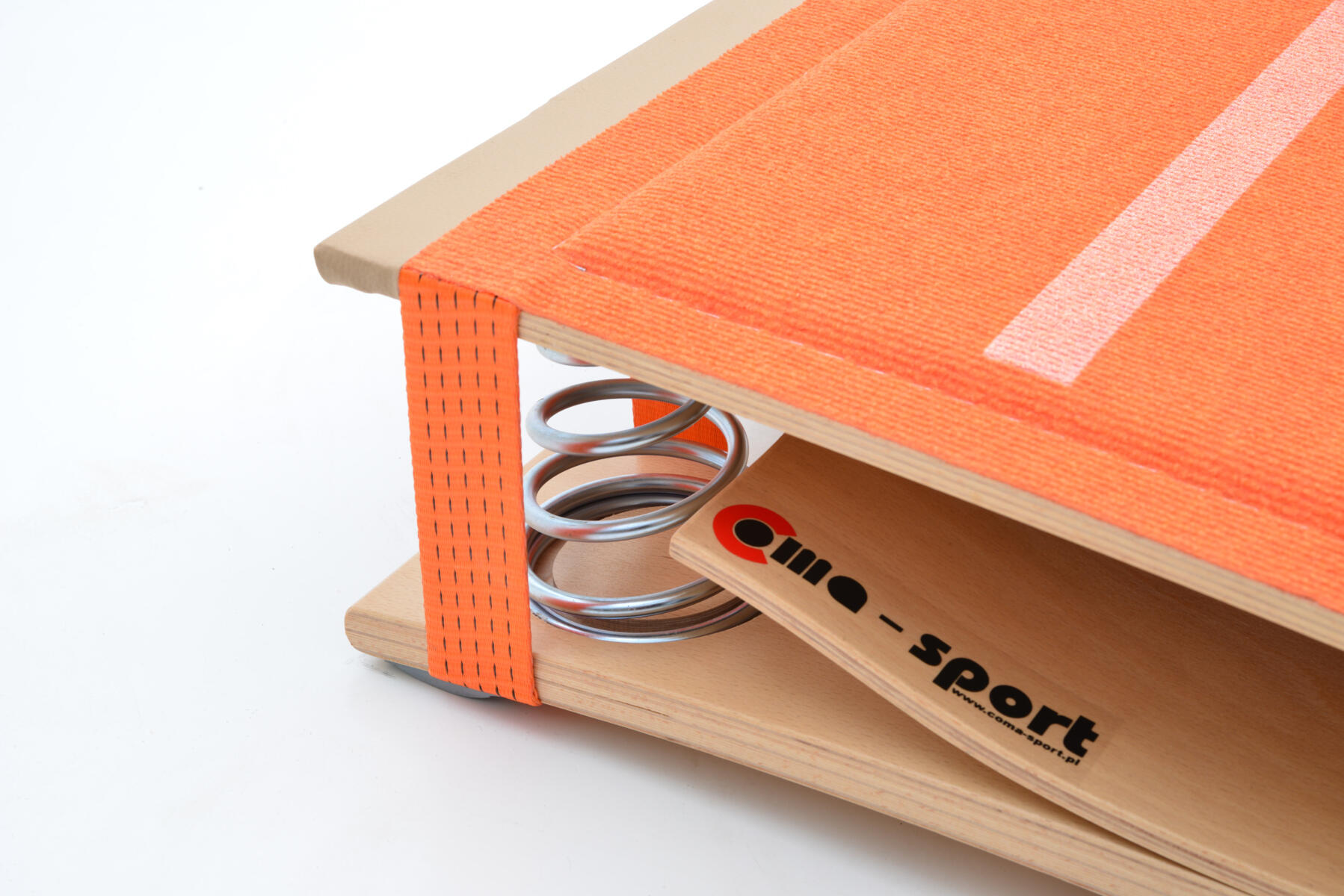 Springbræt med konstruktion af specialstøbte krydsfinerelementer i hårdttræ og to ekstra koniske, kraftige stålfjedre for øget hopdynamik. Udstyret med polstret måtte og et lag genbrugsskum under for effektiv stødabsorbering. Underdelen har skridsikre, ikke-afsmittende gummifødder, som sikrer fremragende stabilitet og beskytter gulvet. Mål: 120×60×21 cm. Testet i henhold til PN-EN 913:2019-03.