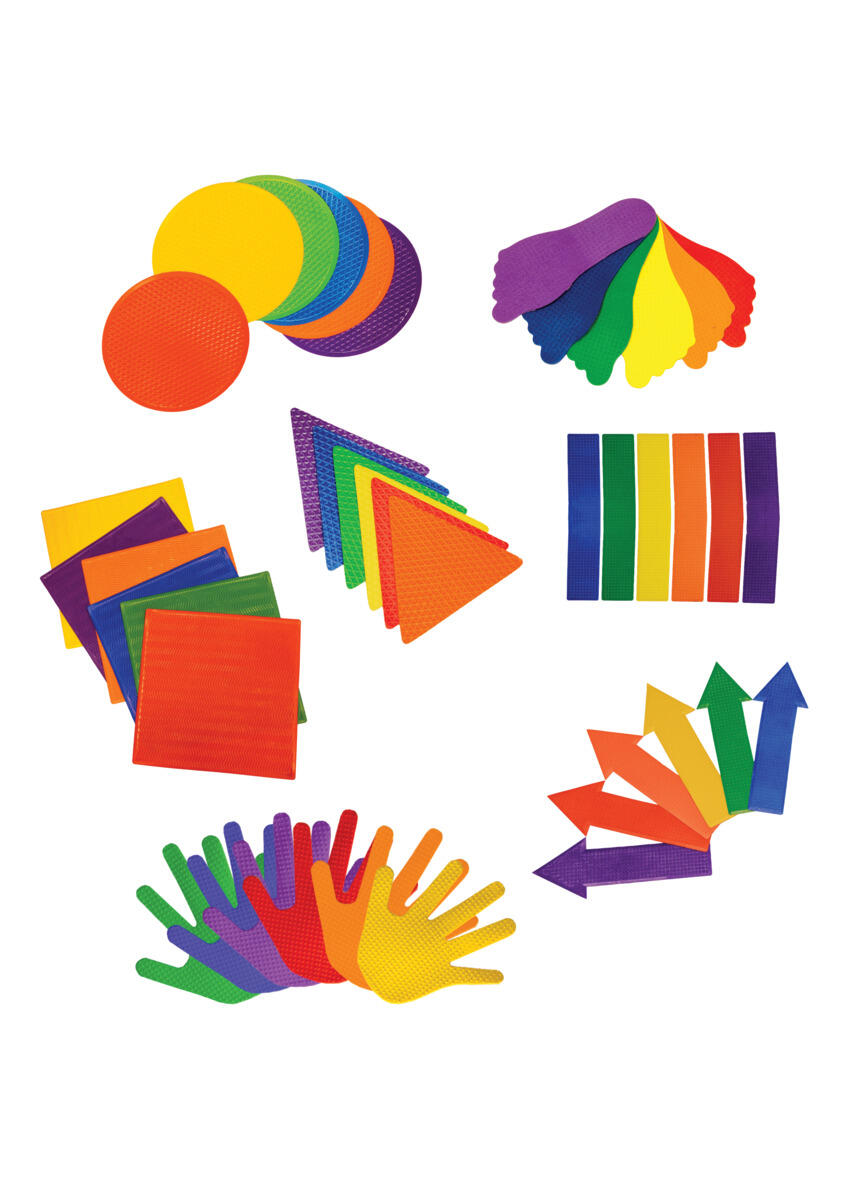 6 stk./pk. Gulvmarkering til leg, motorikbaner og balanceøvelser i 6 forskellige farver. Fremstillet i skridsikkert materiale, som ligger stabilt på gulvet. Kan også bruges udendørs. Af TPE.
