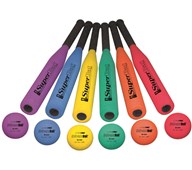 Indeholder 1 fladt boldtræ 49 cm samt 2 runde (Ø4,5 cm), 61 cm og 70 cm lange. Stop-plade 14x14 cm af vandfast krydsfinér samt 4 markeringskegler 23 cm og 1 tennisbold.
