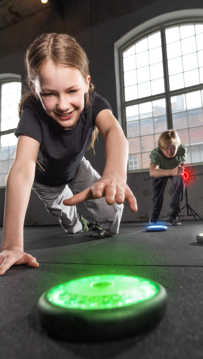 4 stk./pk. Puckene kombinerer lyd og lys, som deltagerne skal løbe hen og slukke. De styres via en gratis app og egner sig både til begyndere og øvede brugere. Puckene er genopladelige, og batterierne holder til ca. 8 timers kontinuerlig brug. Kabler og opladningshub medfølger. Opbevares indendørs.