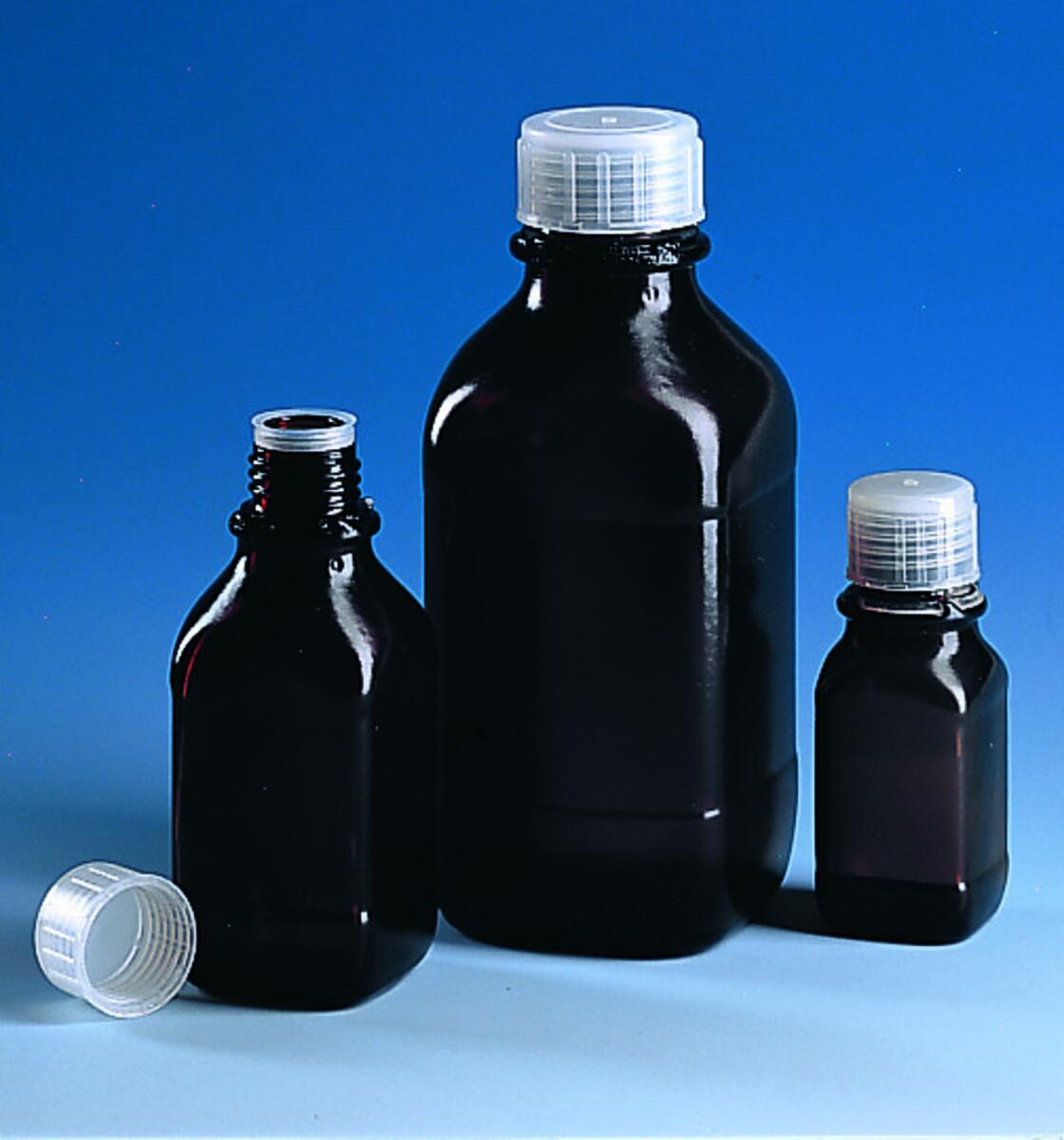 11 stk. firkantede flasker på 2500 ml af brunt sodakalkglas. Flaskerne har gode kemiske og fysiske egenskaber og er beregnet til brug i applikationer uden høj termisk belastning. De har GL 45-gevind og leveres uden prop, men med støvbeskyttende låg. Den firkantede form gør flaskerne pladsbesparende ved opbevaring og transport samt meget stabile. Højde: 283 mm. Udvendig diameter: 139 mm.