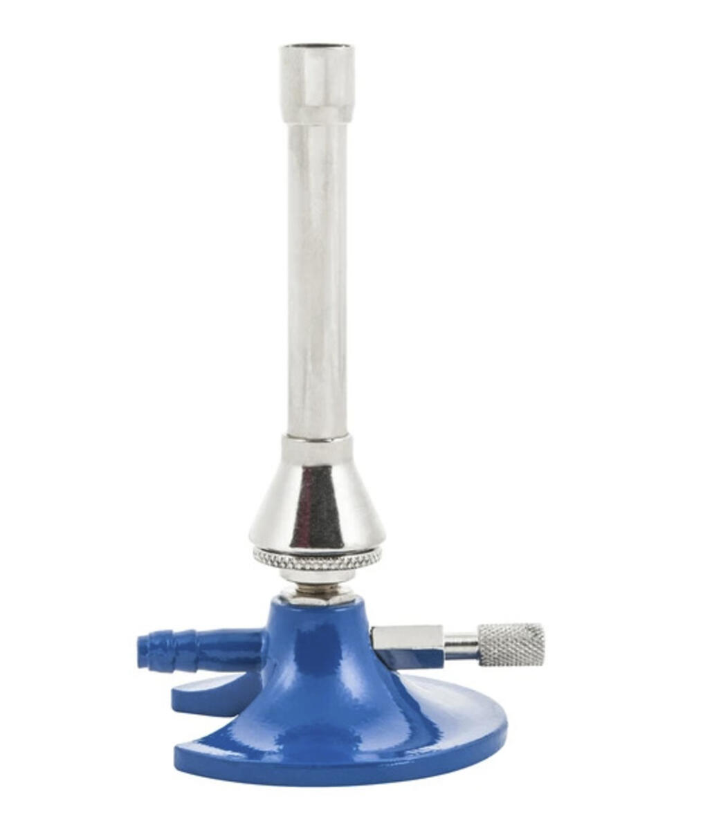 Til tilslutning med gummislange til gasflaske med reduktionsventil. Forkromet rør: 100 × 13 mm. Indløbsrør udvendig Ø 10 mm. Bund Ø 70 mm.