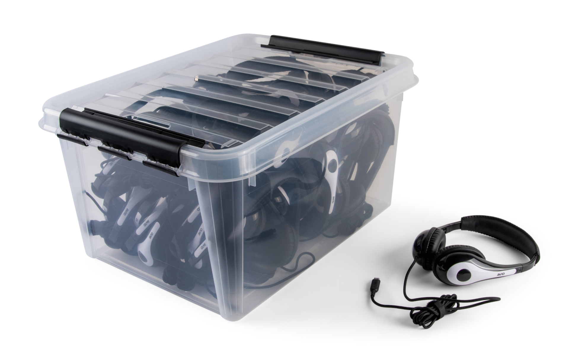 30 stk./pk. AE-54 hovedtelefoner i opbevaringskasse. Praktiske og holdbare hovedtelefoner med lydreducerende ørekopper og minimalt lydudslip. Slidstærk kabel med forstærkede tilslutninger, der er modstandsdygtig over for bid. Hver ledning er udstyret med en lille velcrostrop, så kablerne nemt kan rulles sammen og opbevares uden sammenfiltring. Fra 5 år.