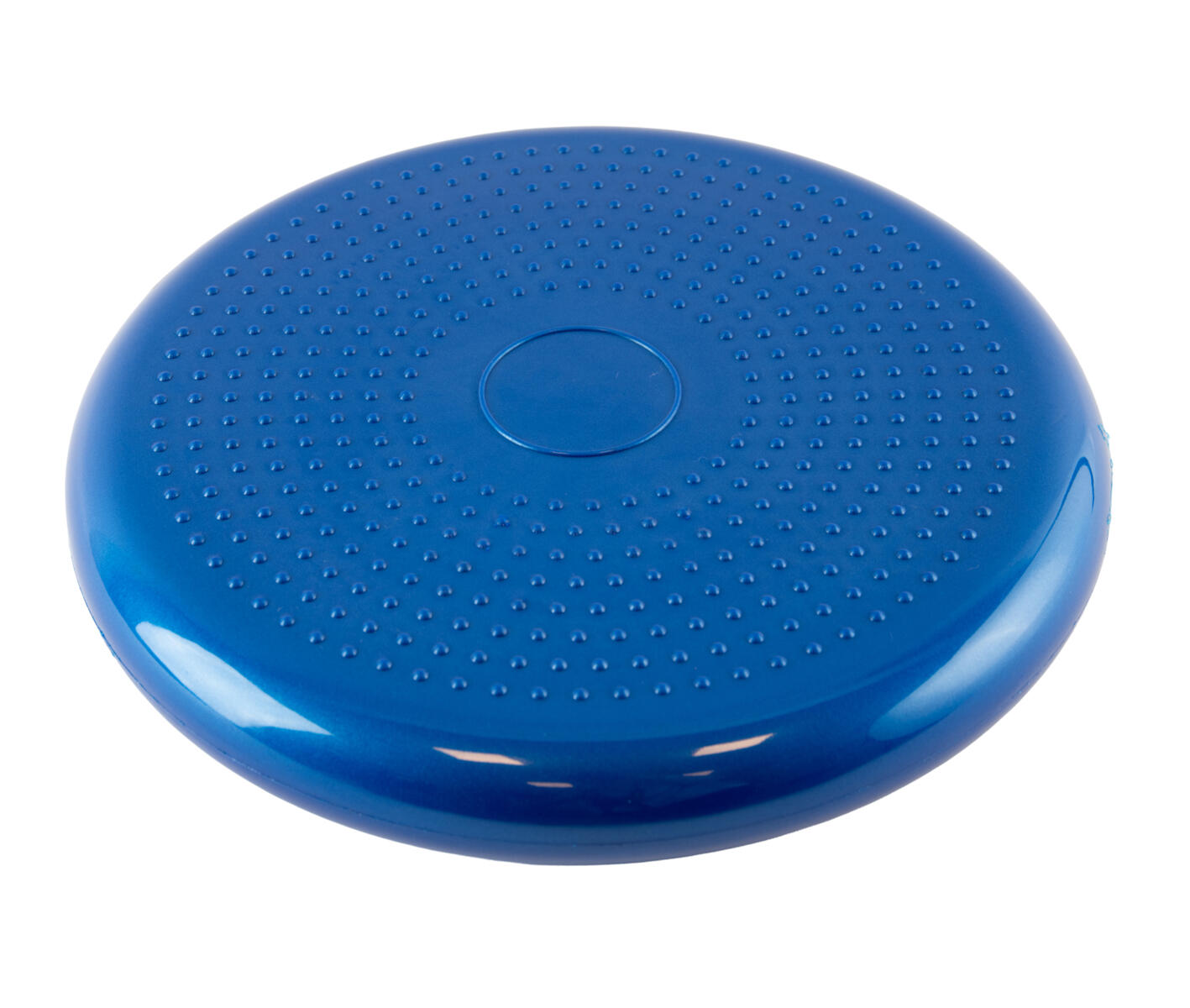 En luftfyldt pude som kan bruges som siddepude til følelsesstimulering og massage. På gulvet bruges den til balanceøvelser og træning af muskulatur. Den ene side har pigge til fodmassage, og den anden har mindre kugler til at sidde på. Ø25 cm. Af PVC, uden forbudte ftalater. Fra 3 år.