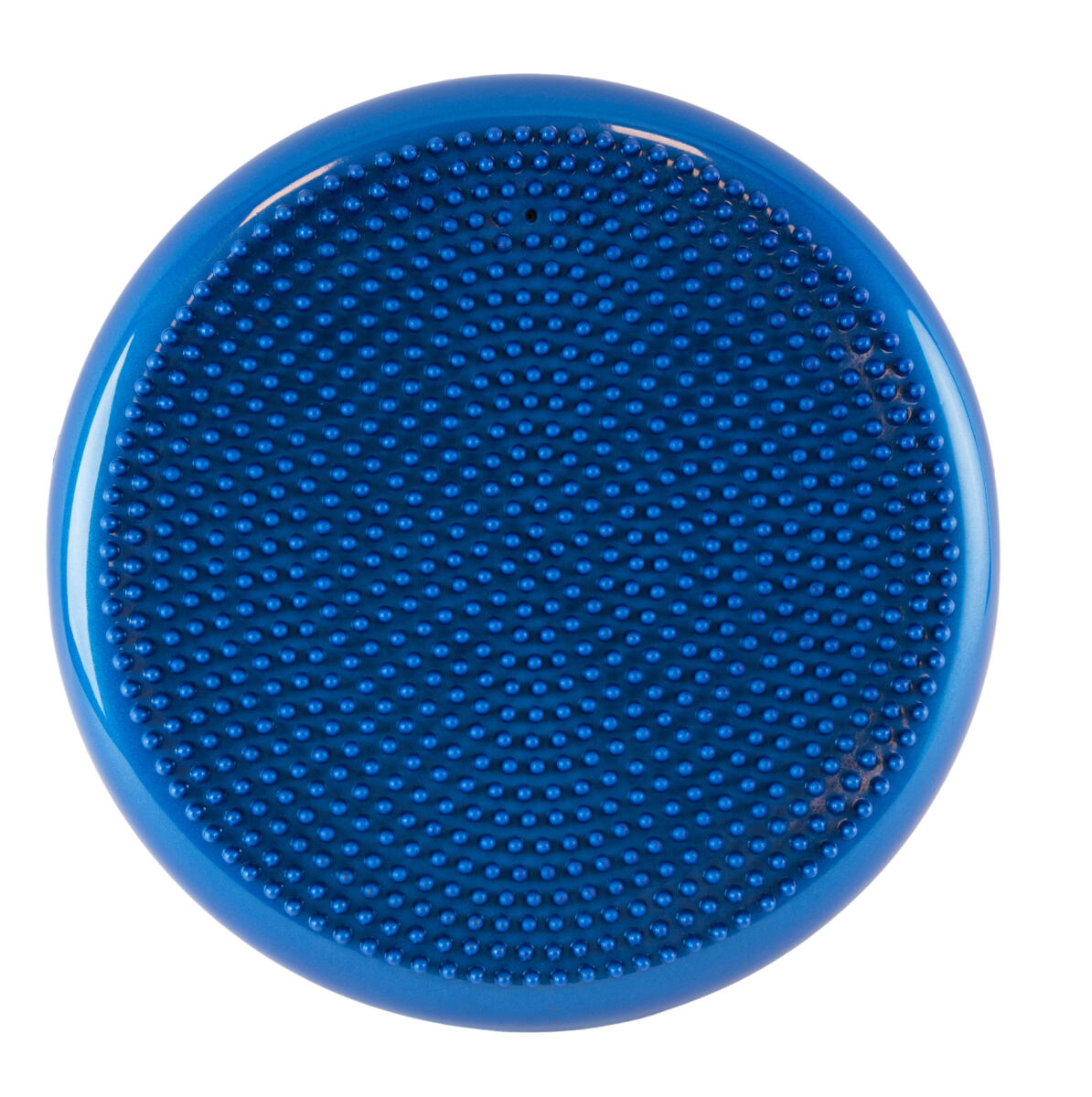 En luftfyldt pude som kan bruges som siddepude til følelsesstimulering og massage. På gulvet bruges den til balanceøvelser og træning af muskulatur. Den ene side har pigge til fodmassage og den anden har mindre kugler til at sidde på. Ø33 cm. Af PVC, uden forbudte ftalater. Fra 3 år.