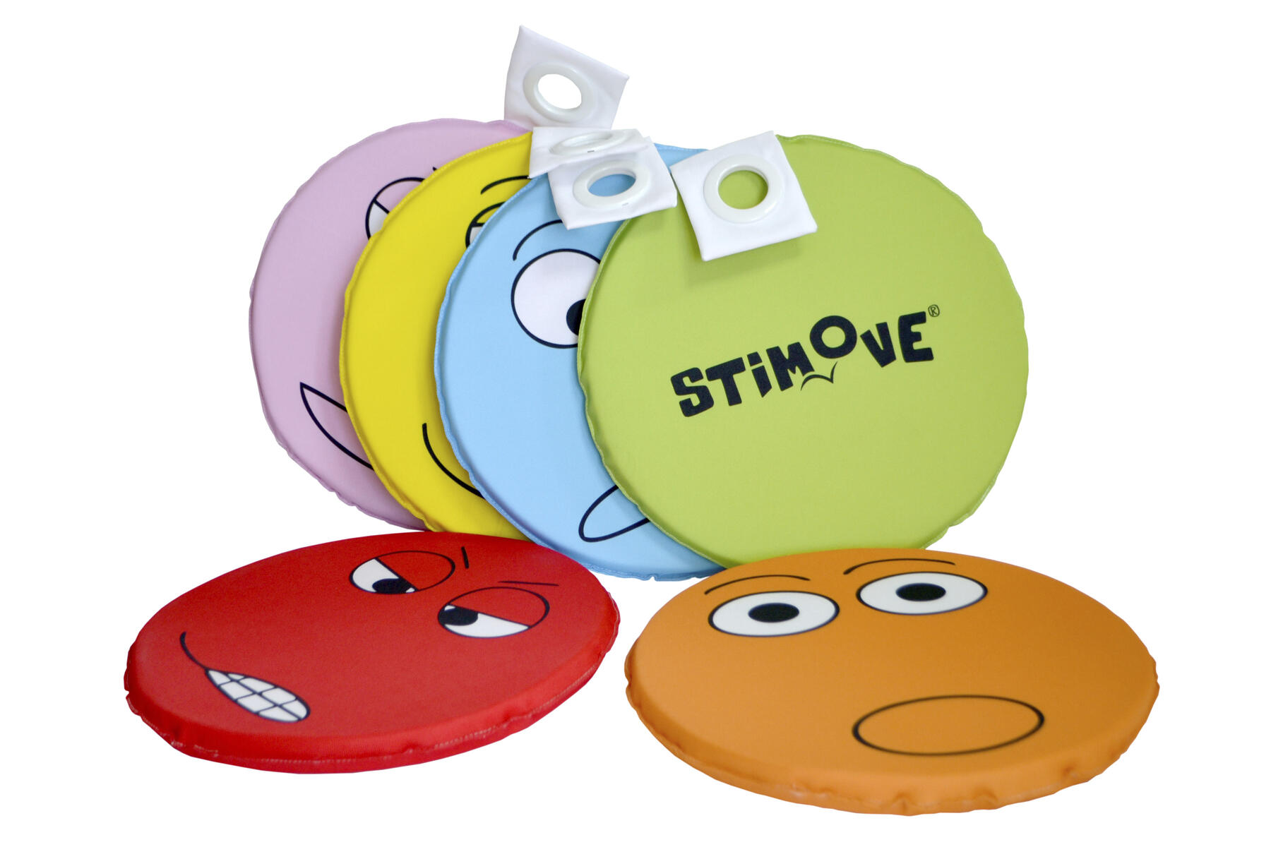 10 luftfyldte puder som kan bruges som siddepude til følelsesstimulering og massage. På gulvet bruges den til balanceøvelser og træning af muskulatur. Den ene side har pigge til fodmassage og den anden har mindre kugler til at sidde på. Ø33 cm. Højde 7,5 cm. Vægt 1050 g. Af PVC, uden forbudte ftalater. Fra 3 år.