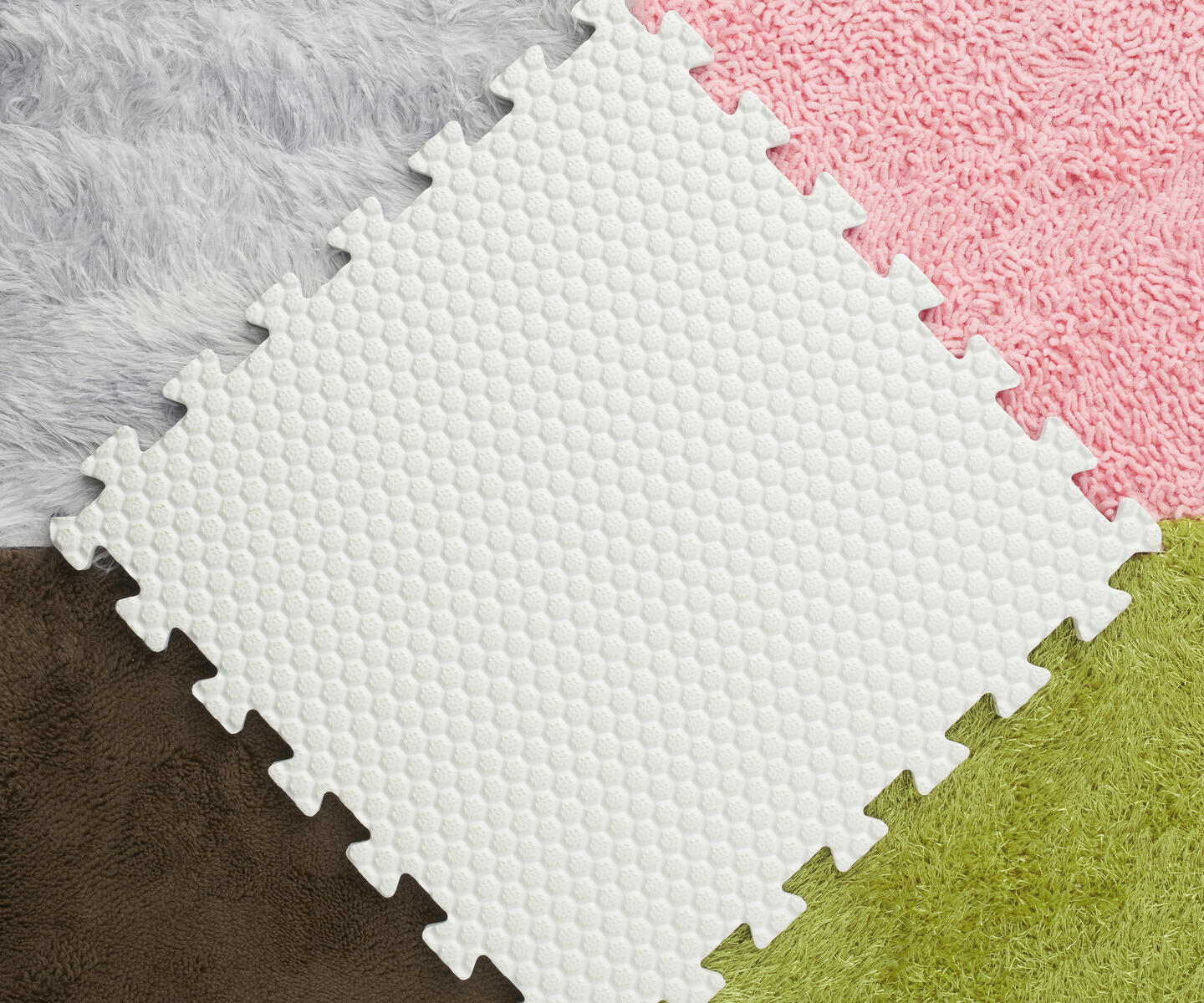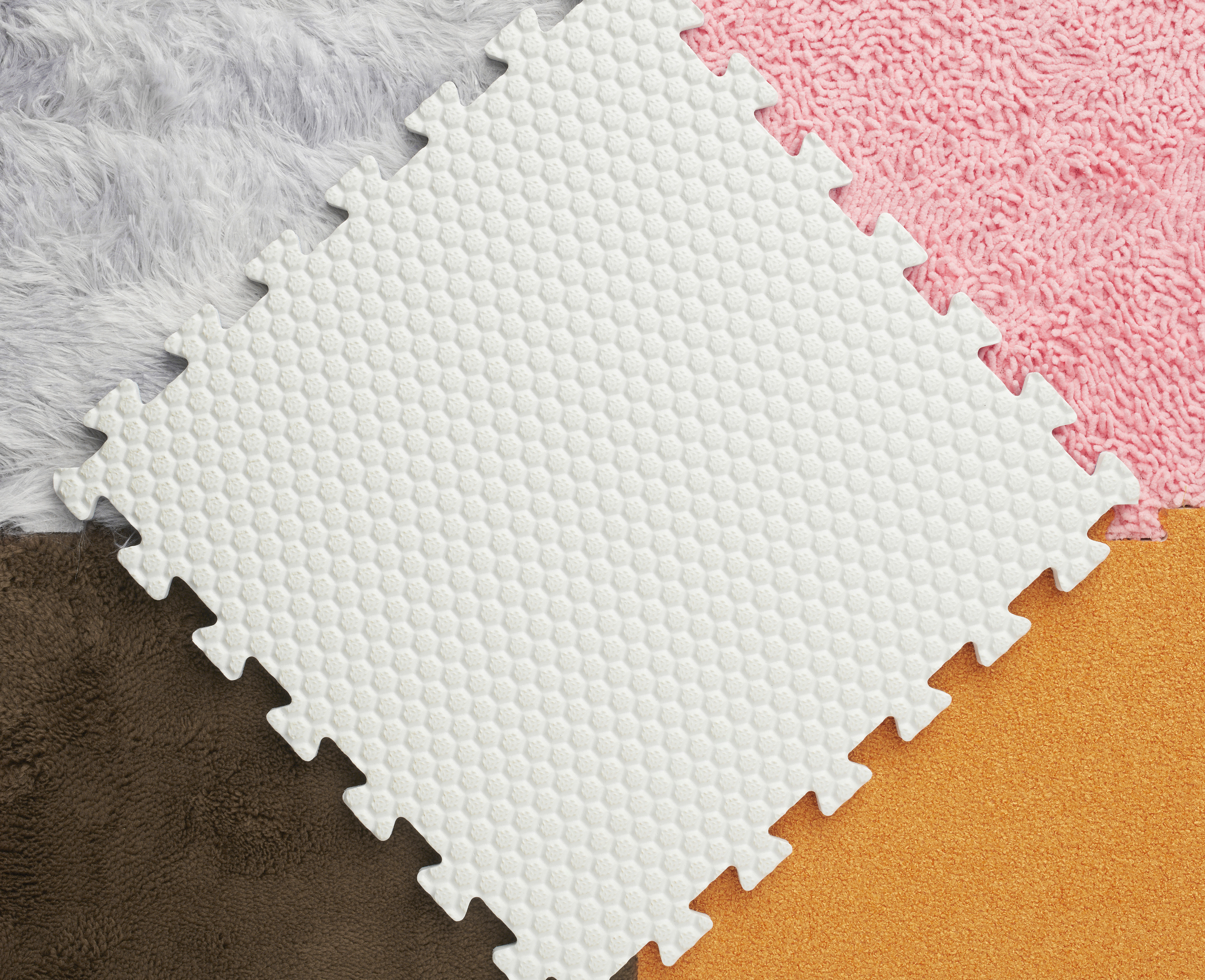 Puslespilsmåtte som kan bruges som et puslespil eller som legemåtte. Af EVA. 36 dele (større variant end den på billedet). Hver brik måler: 32x32x1,3 cm. Fra 0 år.