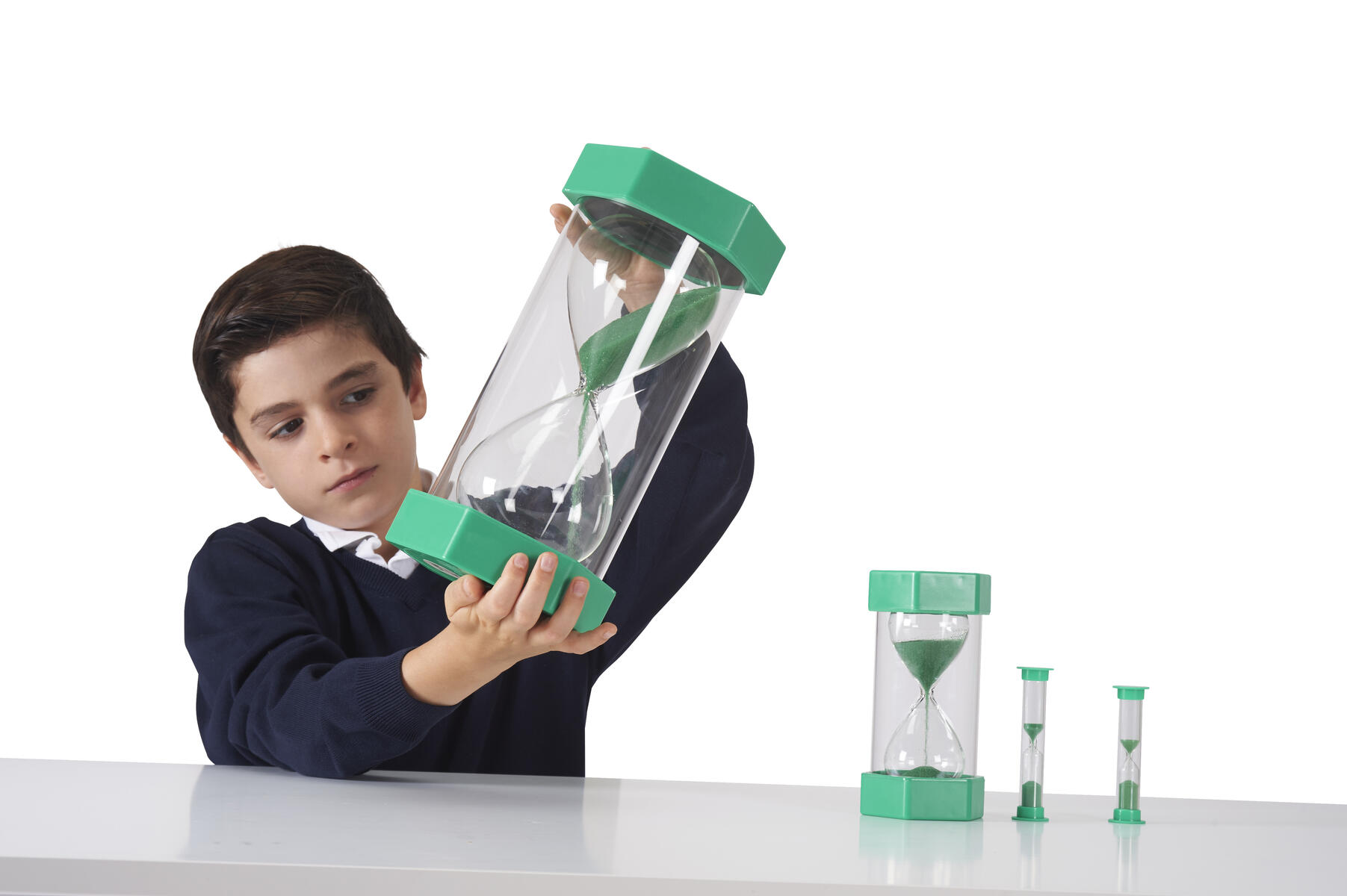 3 stk./pk. Time Timer® i primærfarverne (rød, gul og blå). De forskellige farver kan høre til forskellige områder af rummet, f.eks. stille-området, det kreative område eller læsekrogen. Med magnetisk bagside. Kræver 2xAA batterier, som købes separat. Mål: 19x19x3,8 cm. Fra 3 år.