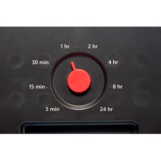 Smart ur som tydeligt viser, hvor lang tid man har tilbage, eller hvor lang tid man har brugt. Sæt det røde felt til den ønskede tid, f.eks. 30 min., det røde felt mindskes siden i urets retning. Kan indstilles fra 0-60 min. Lydløs nedtælling, lydstyrken på alarmen kan justeres på bagsiden.