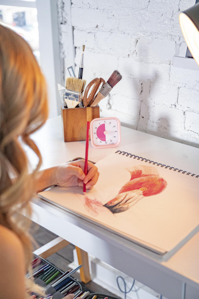 Et meget smart og konkret ur, der tydeligt viser, hvor lang tid man har, eller hvor lang tid der er tilbage. Indstil det rosa felt til den ønskede tid, f.eks. 30 minutter, hvorefter det rosa felt gradvist mindskes med urets retning. Kan indstilles fra 0–60 minutter. Perfekt til brug i en mindre gruppe, ved computeren eller når man vil udføre forskellige opgaver inden for en bestemt tid. Kræver 1 stk. AA-batteri (købes separat). Lydløs nedtælling. Tænd/sluk-knap til alarm på bagsiden. Mål: 9x9 cm. Materiale: ABS, PC og PVC.