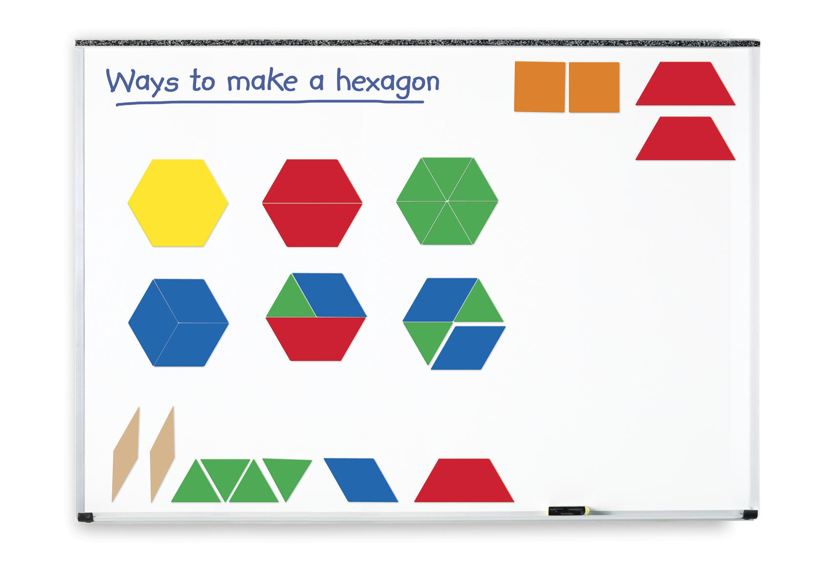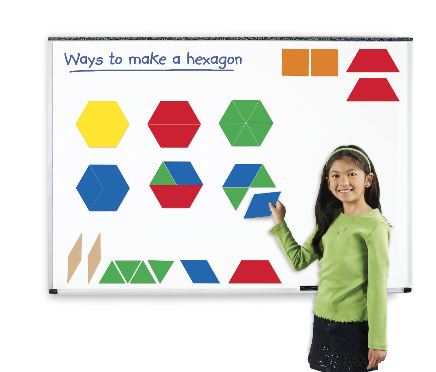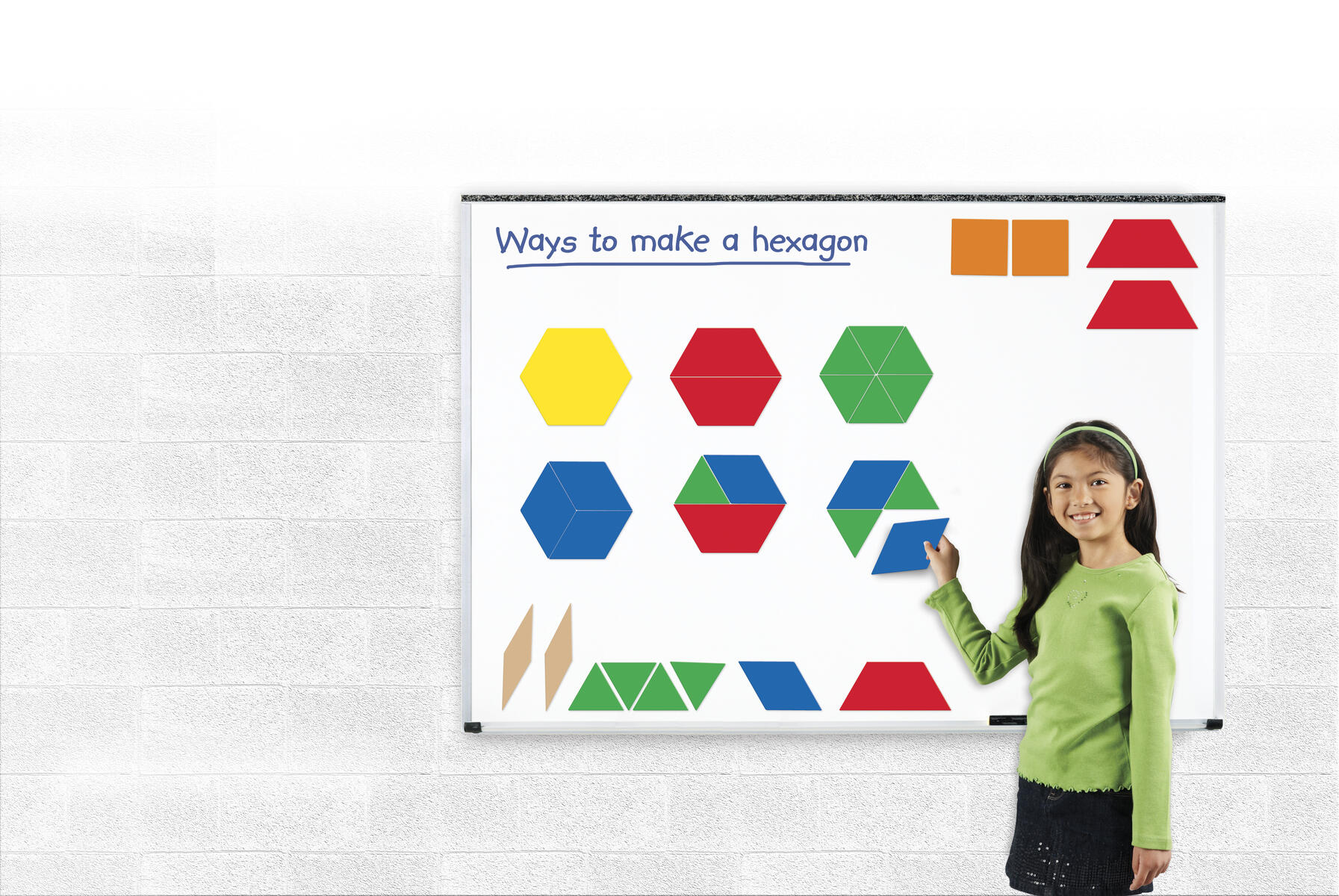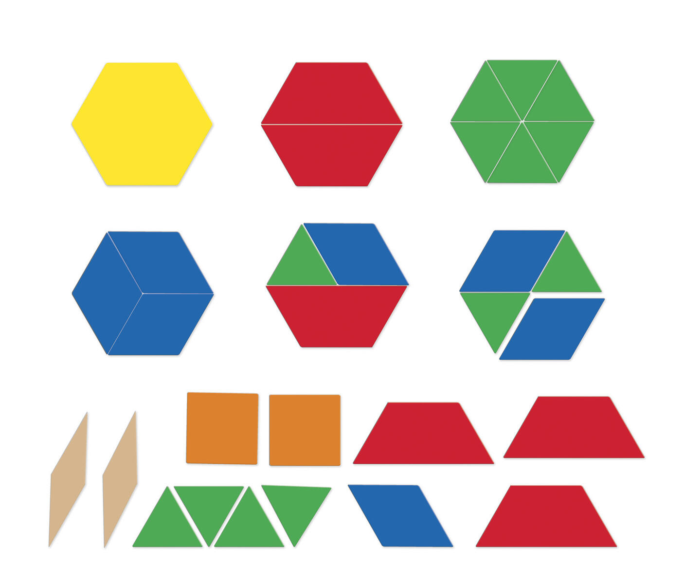 60 stk./pk. Indeholder: 5 forskellige geometriske former (kvadrat, rektangel, cirkel, trekant, heksagon) i 3 farver, 2 størrelser og 2 tykkelser. Siden på den største kvadrat er 5 cm. Af polystyrenplast. Fra 3 år.