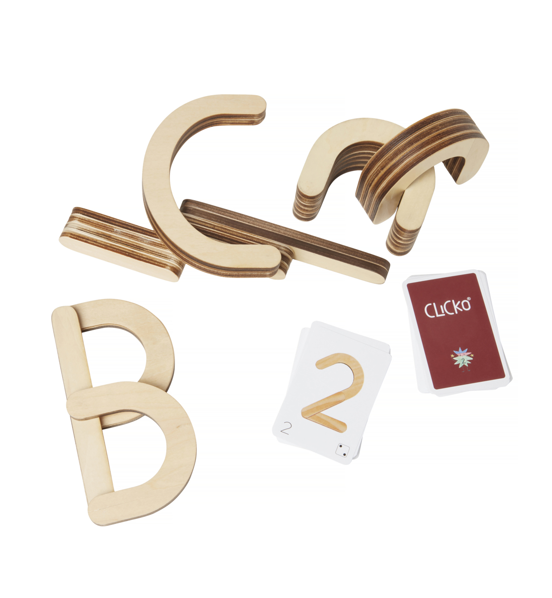 Et kortspil med tallene 0-9, prikker eller regnemetoder til leg og læring med tal og antal. Kortene kan bruges som byggeskabelon sammen med Clickos magnetiske trædele, til memoryspil eller til at øve sig i at regne. Uden regler og færdige instruktioner. Indeholder: 55 spillekort heraf 20 med tal, 20 med prikker, 7 regnemetoder, 5 geometriske figurer og 3 mønstre. Vægt 175 g. Mål: 8×6×2 cm.