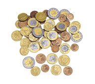 Et blandet møntsæt med realistisk udseende og størrelse. Indeholder 20 stk. af hver: 1 cent, 5 cent, 10 cent og 10 stk. af hver: 20 cent, 50 cent, 1 euro og 5 stk. af hver: 2 cent og 2 euro. I alt 100 mønter. Af PS. Fra 5 år.
