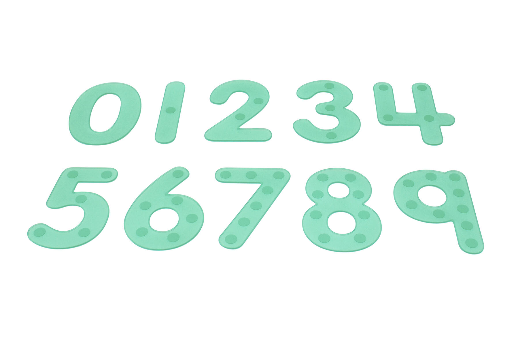Indeholder 24 nummererede, farverige, kvadratiske talplader. Mål: 25x25 cm. Til sjove og aktive tallege f.eks. at hoppe på et specielt tal eller bytte plads. Bagsiden er af gummi. Af 100 % polyester. Kan vaskes ved mild finvask på 30°C.