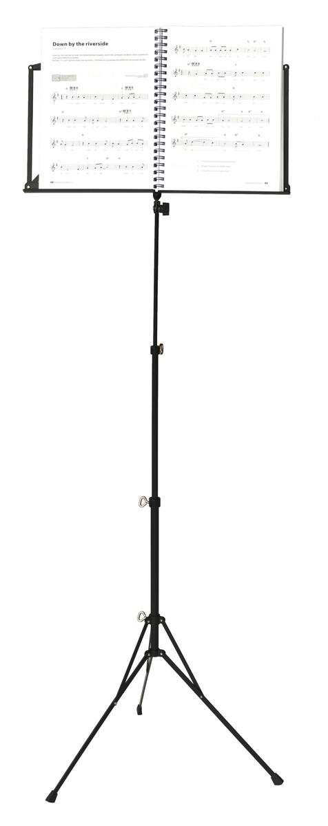 Nodestativ i god kvalitet med ryg i perforeret metal. Justerbar højde 90-140 cm. Bredde 48 cm. Kan foldes sammen og med aftagelig holder.