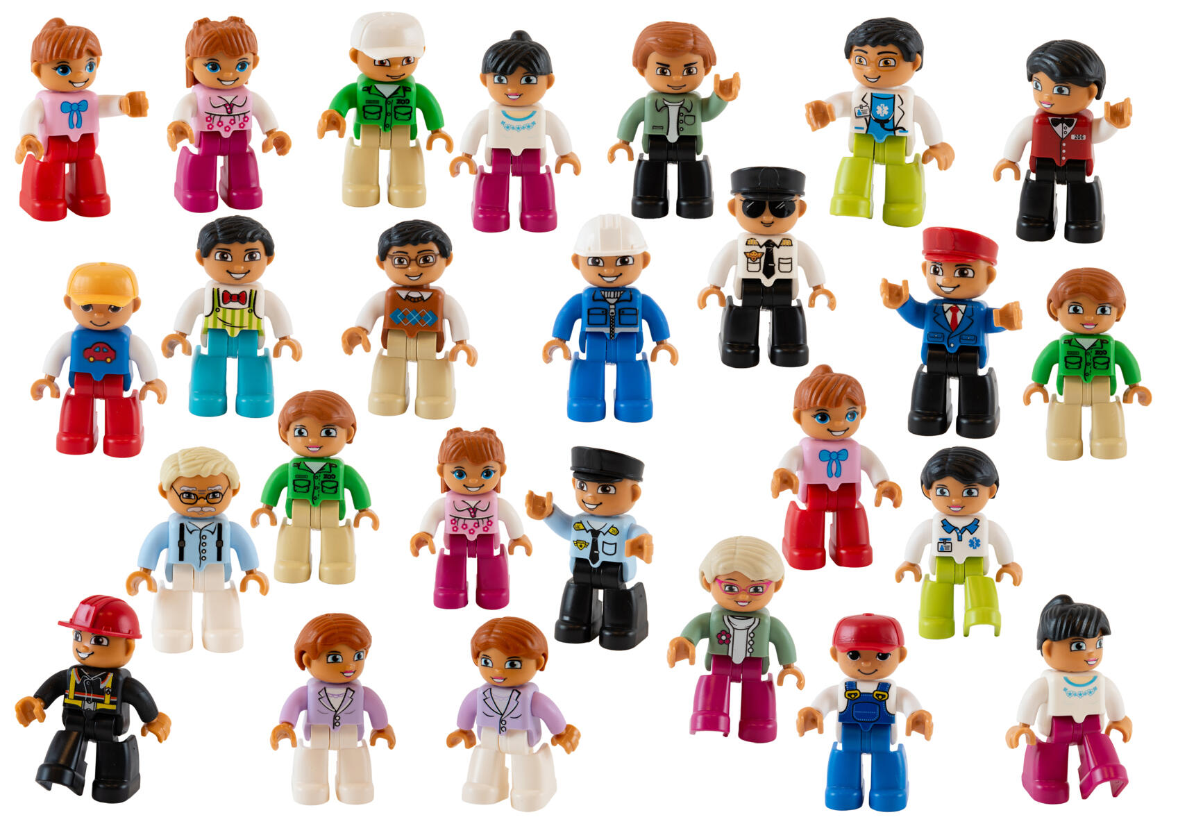 30 stk./pk. Et stort sæt med forskellige legefigurer, som udvikler børns forståelse og respekt for forskellige roller, aldre, køn og mangfoldighed. Af PVC, uden forbudte ftalater. Fra 3 år.