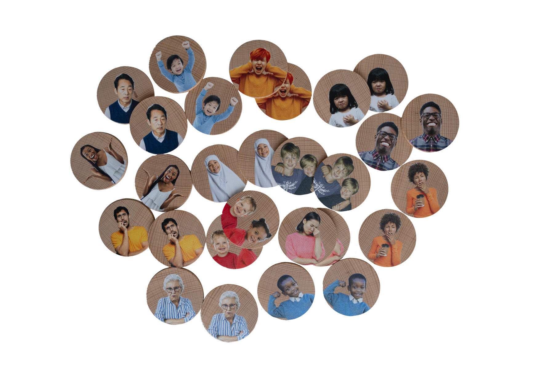 36 stk. Memoryspil om mangfoldighed og social inklusion i skole, daginstitution, hjemmet eller i livet som helhed. Illustrerer værdien af blandt andet tolerance, samarbejde, integration og solidaritet. Af FSC-mærket materiale. Fra 3 år.