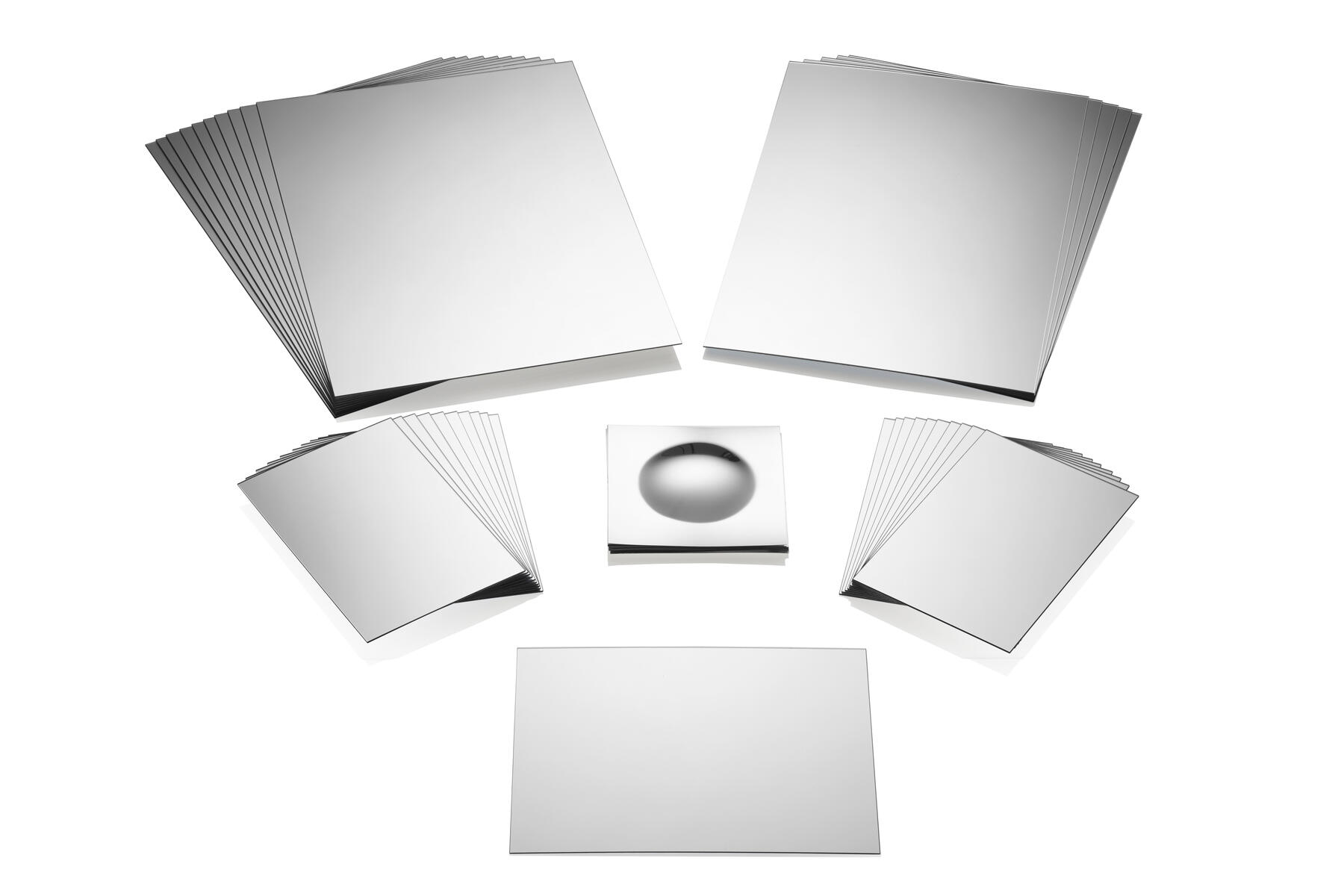 10 stk./pk. Dobbeltsidede plastspejle med finish i høj kvalitet. Spejlene kan nemt bøjes og skæres til i den ønskede størrelse eller form. Kan bruges til forskellige eksperimenter med lys, former og symmetrier. Begge sider er beskyttet med en aftagelig beskyttelsesfilm. Mål: 15x10 cm. Af akrylplast.