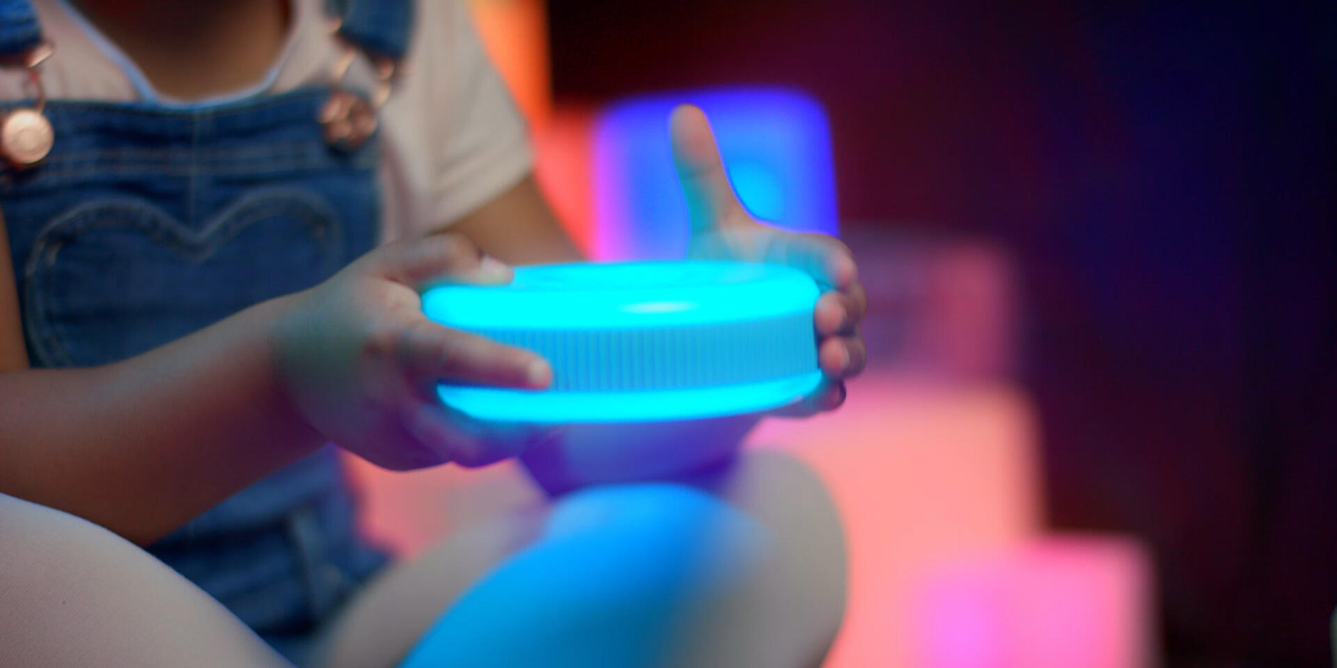 Lysende kuber, der skifter farve, når de vendes. Kombinér gerne med transparente klodser eller byggeklodser for at lyse en iglo eller et farvet vindue op. Genopladelige med USB-kabel. Af PP. PVC-fri. Fra 0 år.