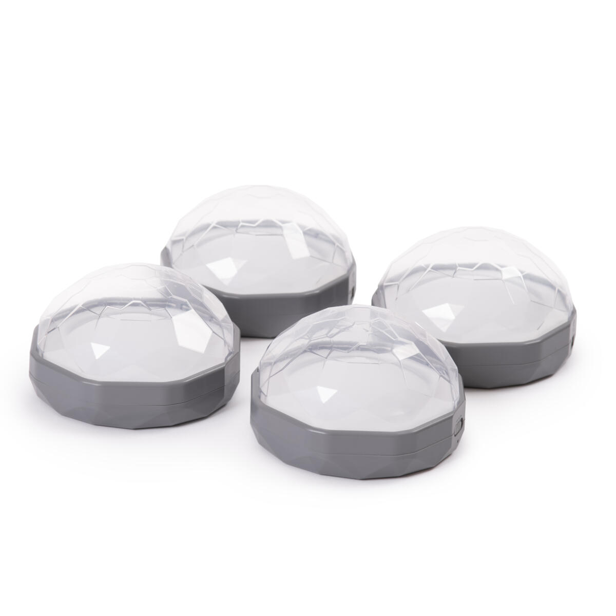4 stk. Alsidige og legende sensoriske juveler, der understøtter udviklingen af flere færdigheder. Tryk for at tænde eller skifte farve – og optag lyd i op til 30 sekunder. Giver multisensorisk stimulering med lys, lyd og kognition og træner forståelsen af årsag og virkning. Kan bruges liggende eller monteres på væg. Genopladelige: fuld opladning på 4 timer, driftstid op til 8 timer. Mål: 18,5 × 10,8 × 10,8 cm. Fra 10 måneder.