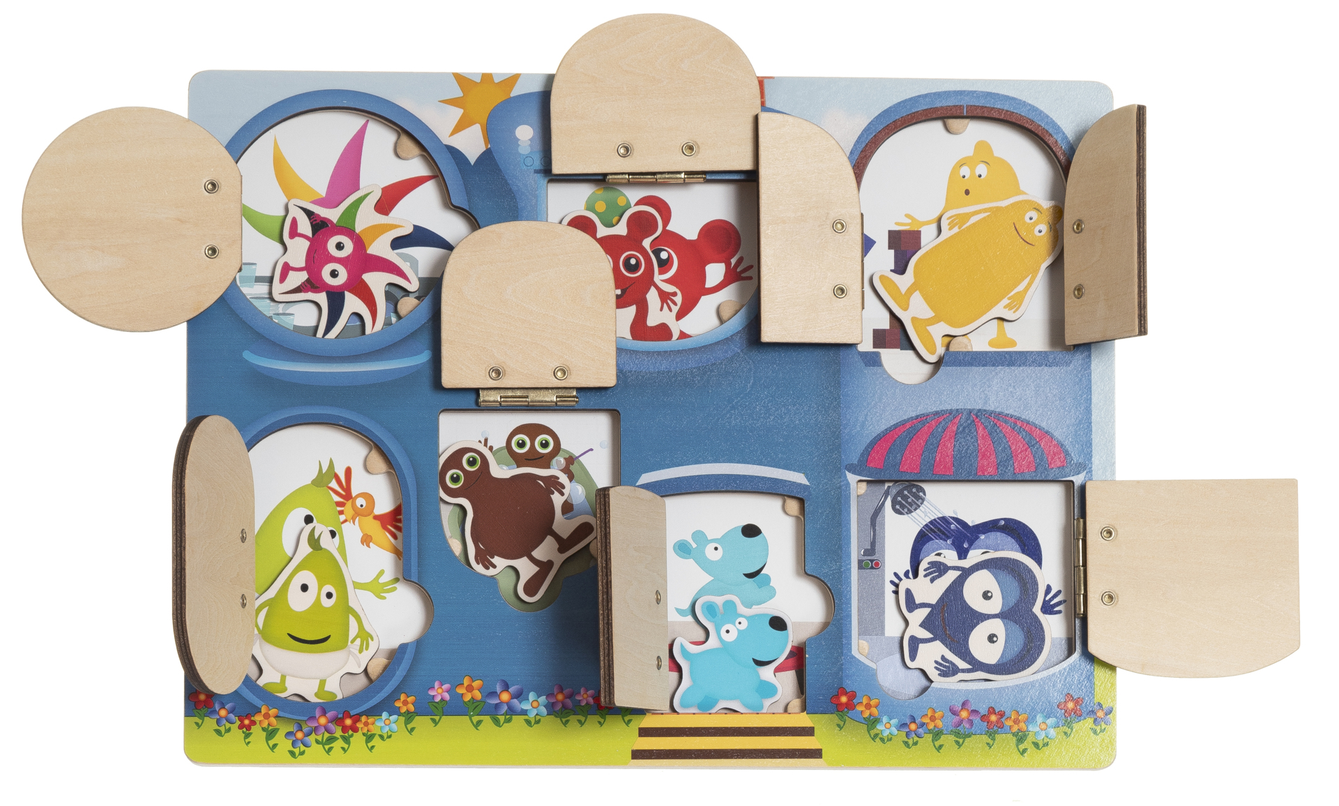 Et spændende puslespil med 7 brikker/døre/vinduer, som man kan åbne og lukke. Ved at flytte de små Babblarna-figurer mellem forskellige aktiviteter og rum kan børnene få stimuleret fantasien og udviklet motorikken, samtidig med at de har det sjovt. Mål: 30x22 cm. Fra 1 år.