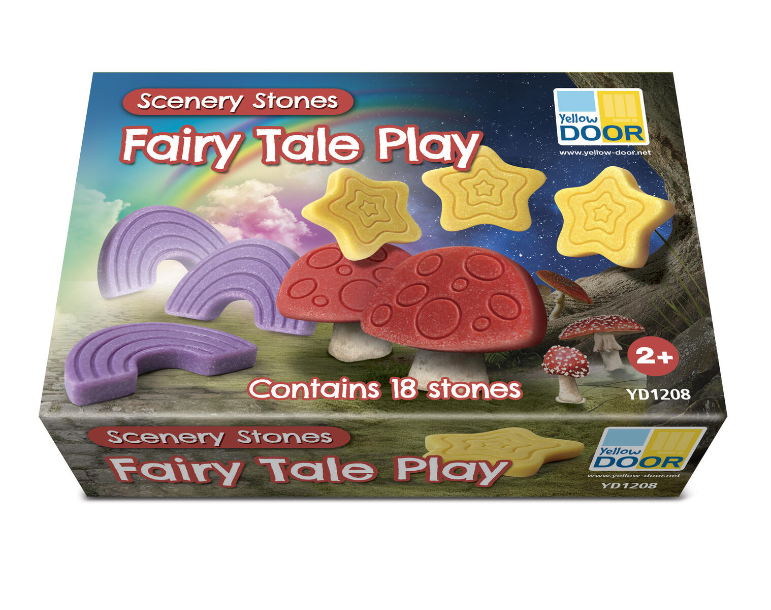 18 stk./pk. Sten med motiver af magiske regnbuer, glitrende stjerner og paddehatte. Opmuntrer til fantasifuld leg med mange forskellige temaer og kan desuden bruges til sprogtræning og sorteringslege. Fungerer udendørs i vand, ler og jord og kan også bruges indendørs. Af stenblanding. Mål: Ca. 45-50 mm. Fra 2 år.