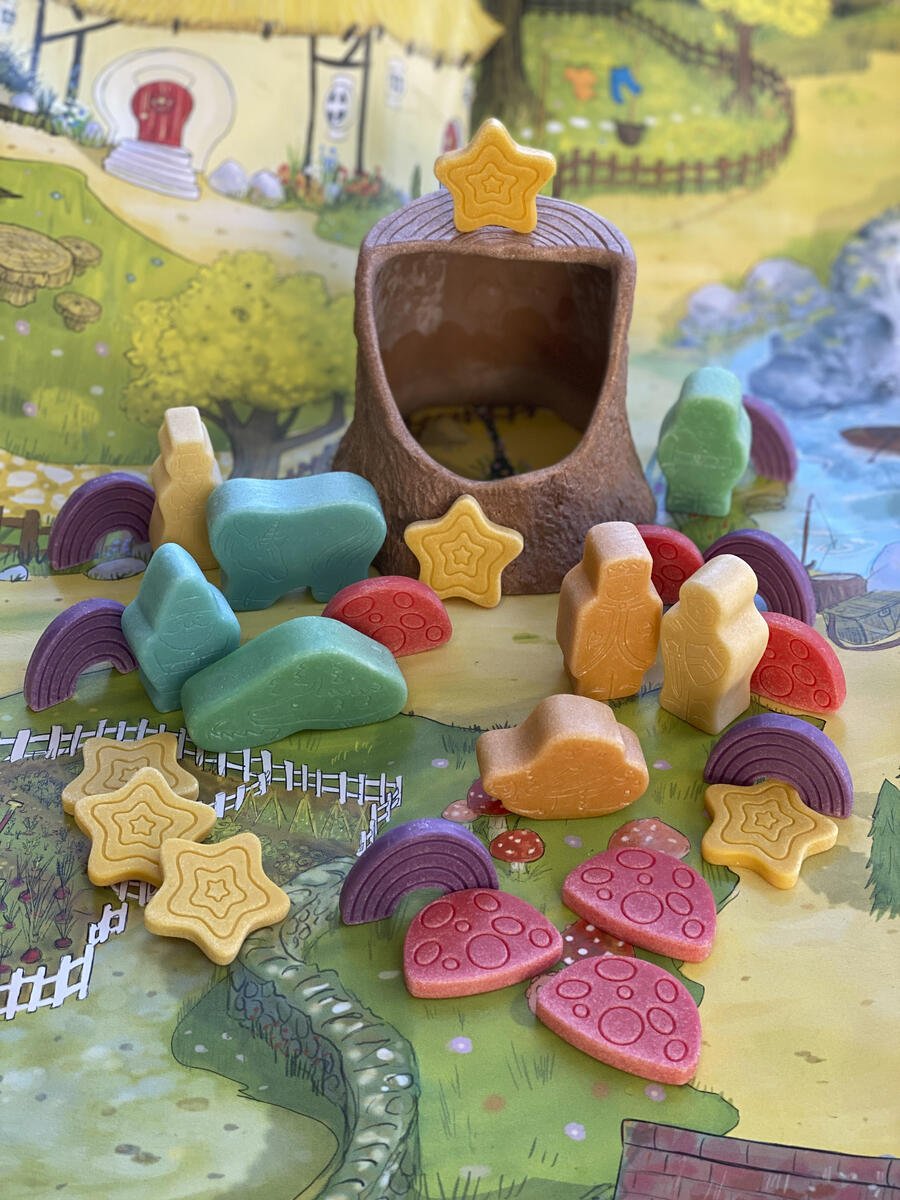 27 dele. Skab en eventyrverden, der opmuntrer til fantasifuld leg med mange forskellige temaer. Byg svampe og regnbuer omkring stubben og lad karakterer fra eventyrene flytte ind i denne fantasiverden. Tilføj ler og jord for realistisk leg. Lavet af en blanding af sten og harpiks, der gør dem velegnede både indendørs og udendørs. PVC-fri. Fra 2 år.